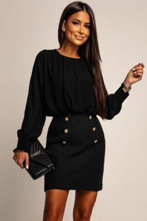 ΦΟΡΕΜΑ ΜΙΝΙ ΜΕ ΣΤΡΟΓΓΥΛΗ ΝΤΡΑΠΕ ΛΑΙΜΟΚΟΨΗ ΚΑΙ ΔΙΑΚΟΣΜΗΤΙΚΑ ΚΟΥΜΠΙΑ – ΜΑΥΡΟ