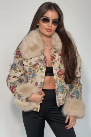ΜΠΟΥΦΑΝ JACKET ΜΕ FLORAL ΚΕΝΤΗΜΑ ΚΑΙ ΓΟΥΝΙΝΗ ΛΕΠΤΟΜΕΡΕΙΑ – ΜΠΕΖ