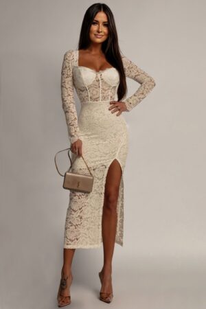 ΦΟΡΕΜΑ MIDI CORSET ΜΕ ΔΑΝΤΕΛΑ ΚΑΙ ΣΚΙΣΙΜΟ ΣΤΟ ΠΟΔΙ – ΛΕΥΚΟ