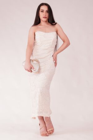 ΦΟΡΕΜΑ MIDI STRAPLESS ΜΕ ΠΑΓΙΕΤΕΣ ΚΑΙ ΠΕΡΛΕΣ – ΕΚΡΟΥ