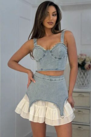 ΣΕΤ JEAN CROP TOP KAI ΦΟΥΣΤΑ ΜΕ ΒΟΛΑΝ ΣΤΟ ΤΕΛΕΙΩΜΑ – ΜΠΛΕ