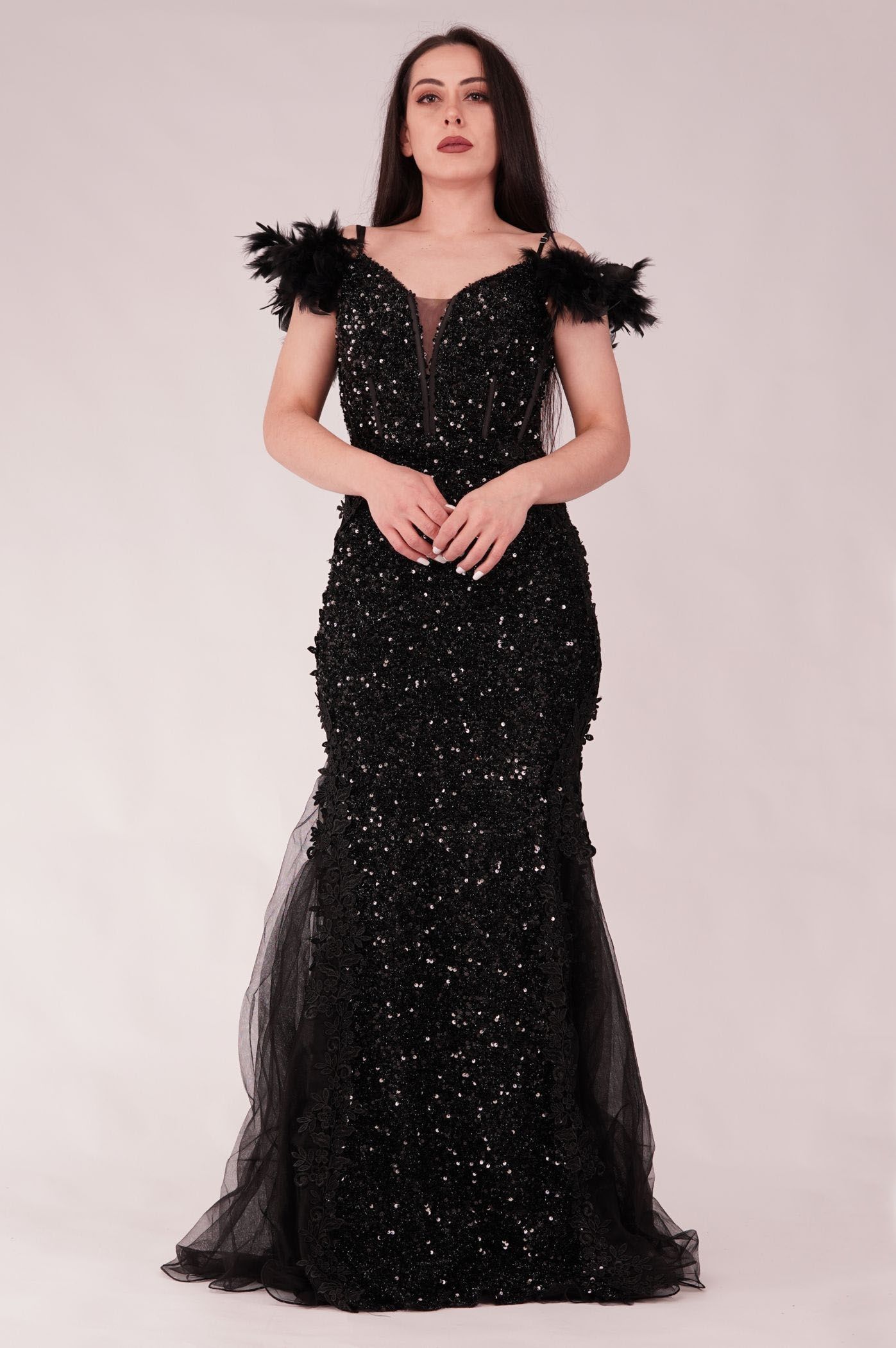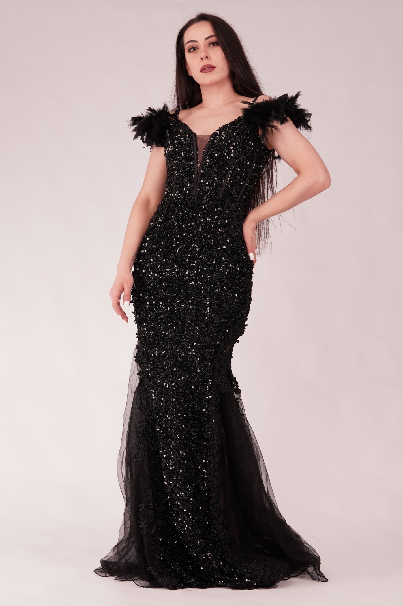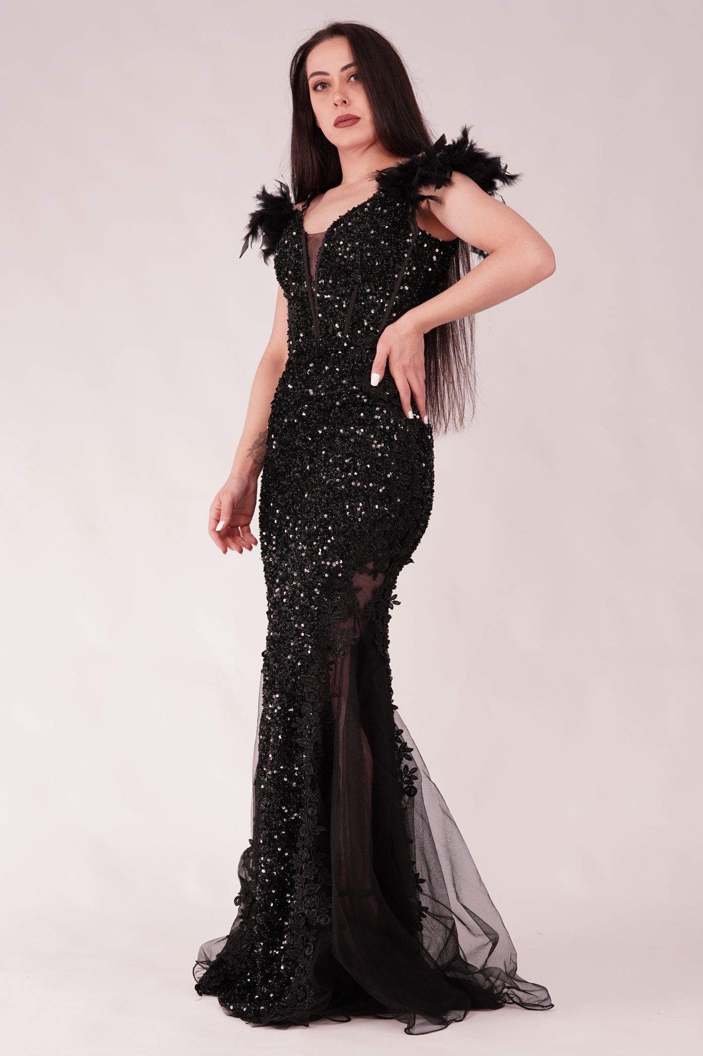 Αναδείξτε τη λάμψη και την κομψότητά σας με αυτό το υπέροχο maxi φόρεμα. Το εντυπωσιακό σχέδιο με παγιέτες και διαφάνεια στο πλάι χαρίζει πολυτελή αισθητική, ενώ οι λεπτομέρειες με φτερά στους ώμους προσθέτουν μια δόση ρομαντισμού και φαντασίας. Το εφαρμοστό κόψιμο αγκαλιάζει τη σιλουέτα και αναδεικνύει τις καμπύλες, ιδανικό για βραδινές εμφανίσεις, γάμους ή επίσημες εκδηλώσεις.