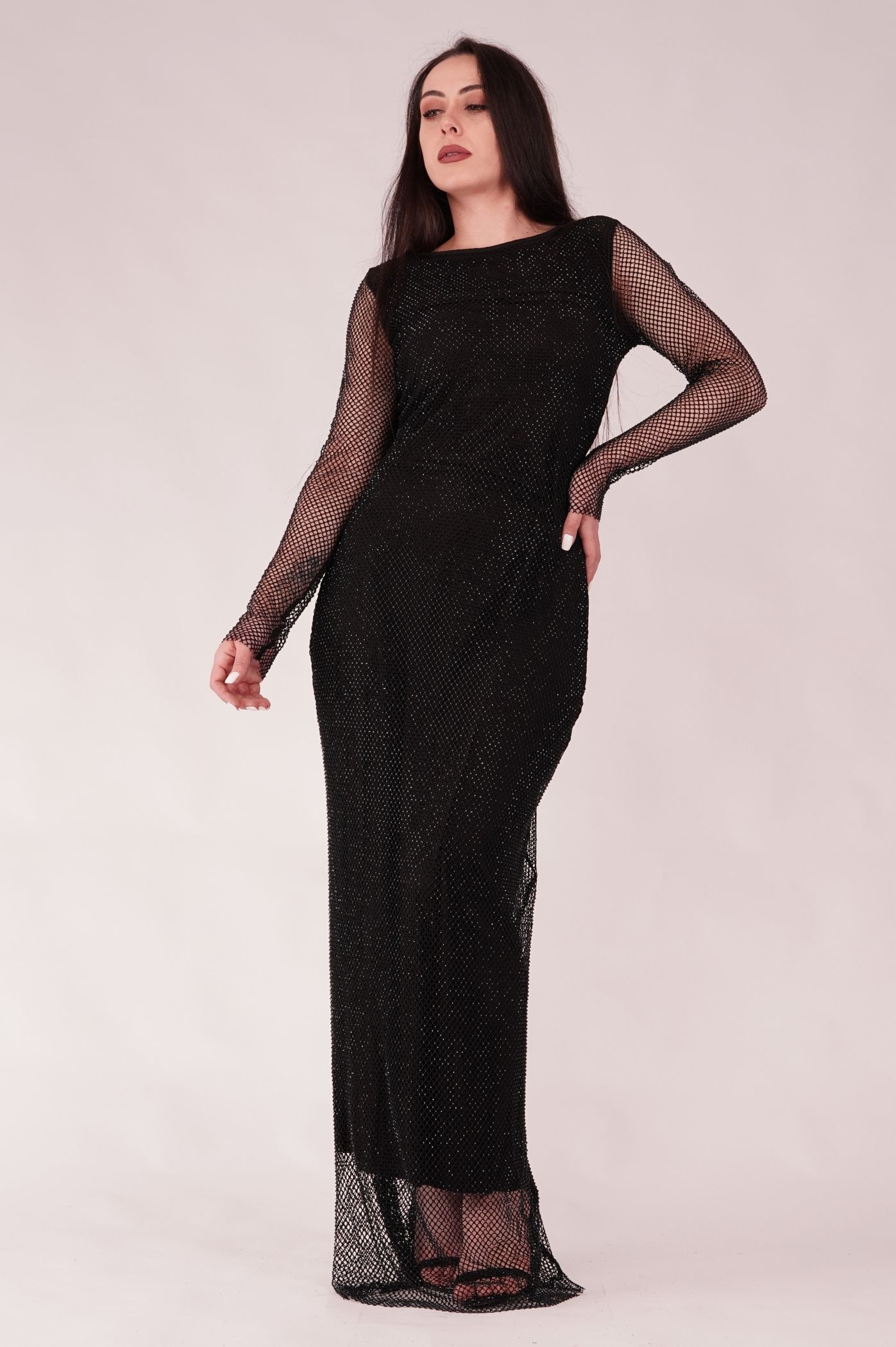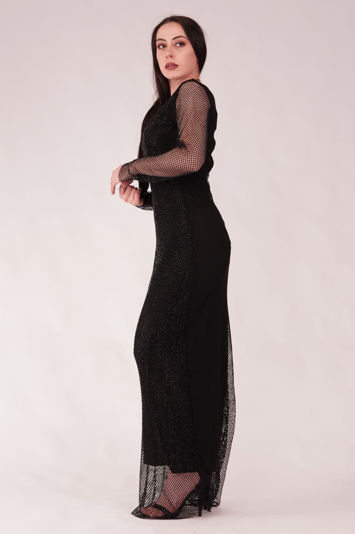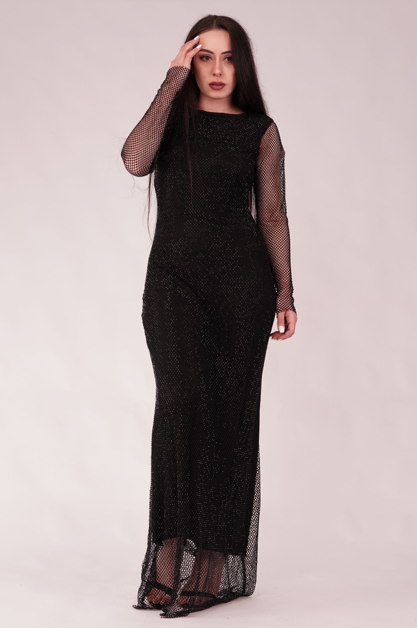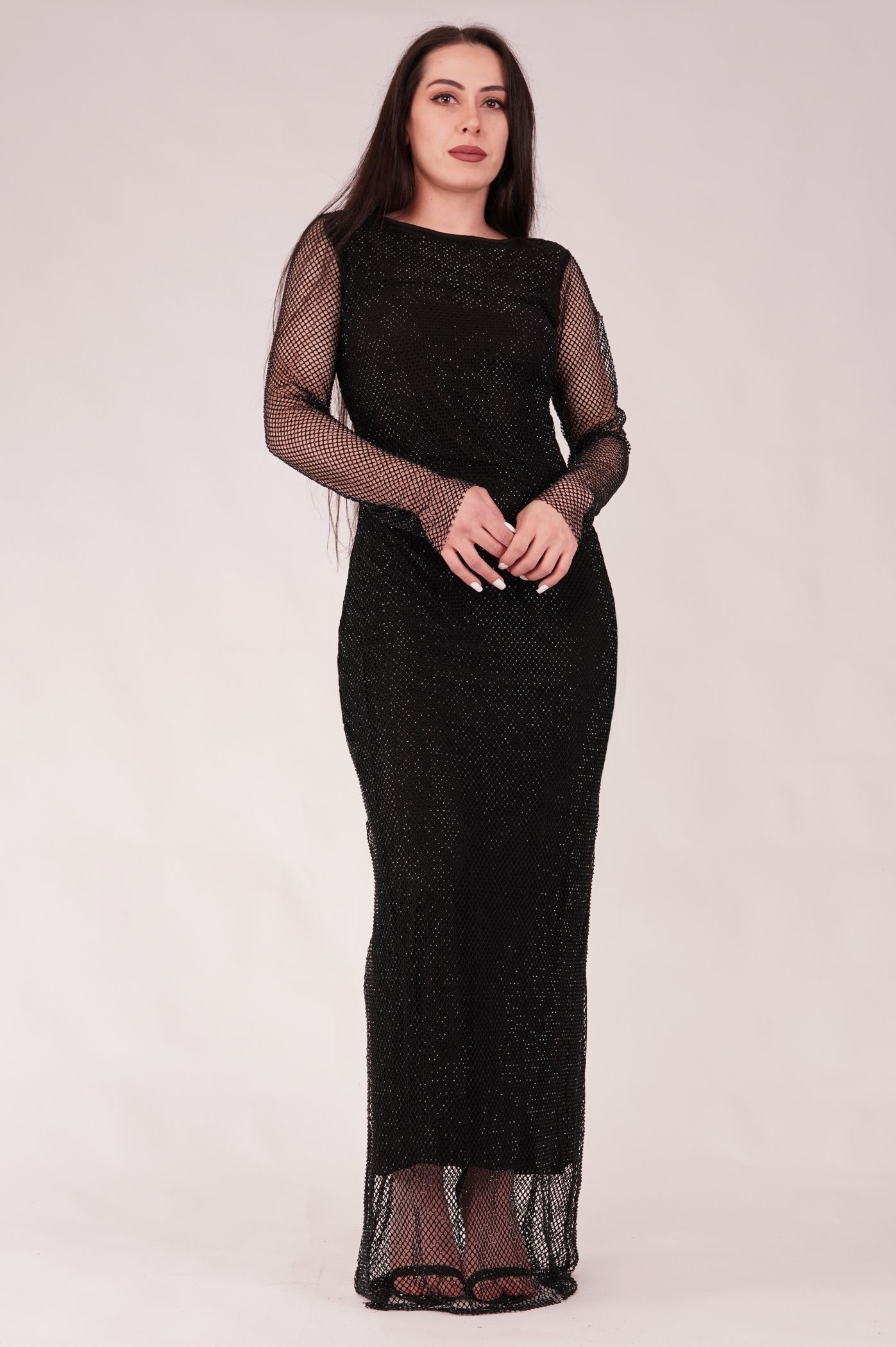 Αναδείξτε τη θηλυκότητά σας με αυτό το εντυπωσιακό maxi φόρεμα με στρας και διαφάνεια. Το εφαρμοστό του κόψιμο αγκαλιάζει αρμονικά το σώμα, ενώ τα λαμπερά στρας χαρίζουν πολυτελή λάμψη σε κάθε σας εμφάνιση. Ιδανικό για βραδινές εξόδους, πάρτι ή ξεχωριστές περιστάσεις. Διαθέτει μακριά μανίκια και στρογγυλή λαιμόκοψη για μια κομψή και μοντέρνα αισθητική.