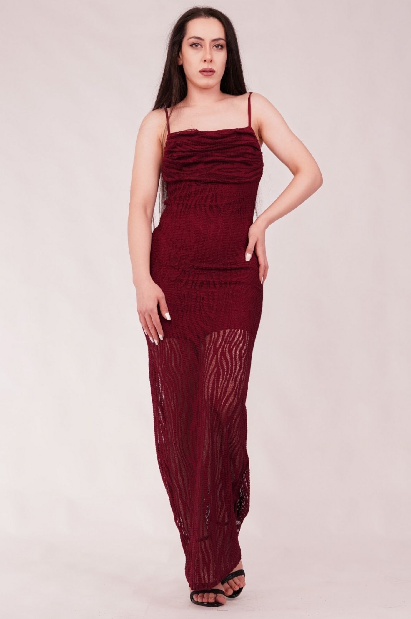 Κάντε μια τολμηρή και αισθησιακή εμφάνιση με αυτό το εντυπωσιακό μακρύ φόρεμα. Συνδυάζοντας την τάση του animal print με την κομψότητα της δαντέλας, αυτό το φόρεμα είναι ιδανικό για βραδινές εξόδους, πάρτι και events όπου θέλετε να εντυπωσιάσετε. Το ύφασμα διαθέτει ένα ανάγλυφο δαντελένιο μοτίβο που μιμείται το animal print, δημιουργώντας ένα μοναδικό οπτικό αποτέλεσμα. Το στράπλες κόψιμο με διακριτικό ντραπέ στο μπούστο αναδεικνύει τους ώμους και το λαιμό, ενώ η ίσια γραμμή αγκαλιάζει τη σιλουέτα. Το φόρεμα έχει διακριτική διαφάνεια στο κάτω μέρος λόγω της πλέξης της δαντέλας, προσθέτοντας έναν αισθησιακό τόνο, ενώ το μήκος είναι maxi.