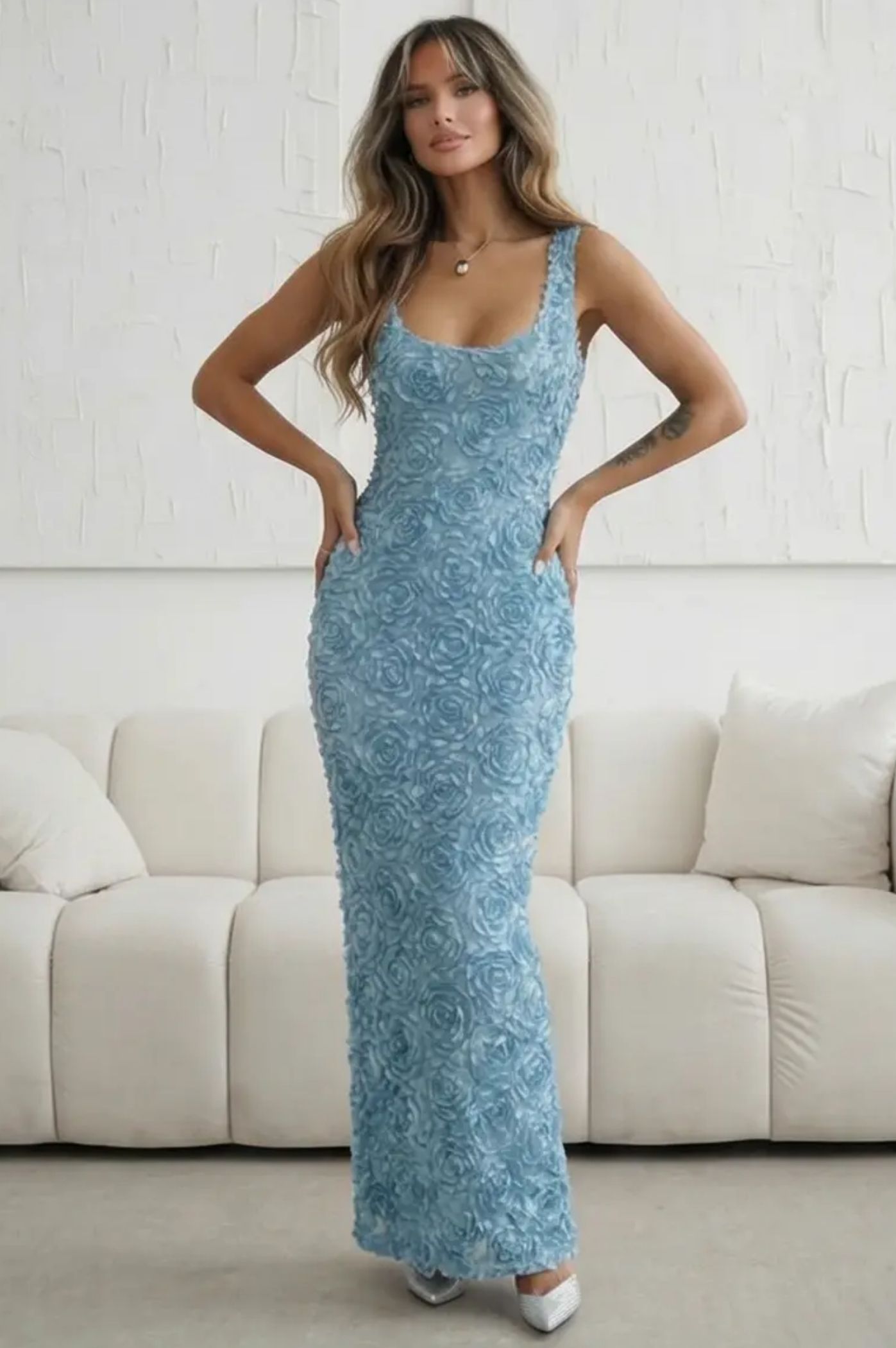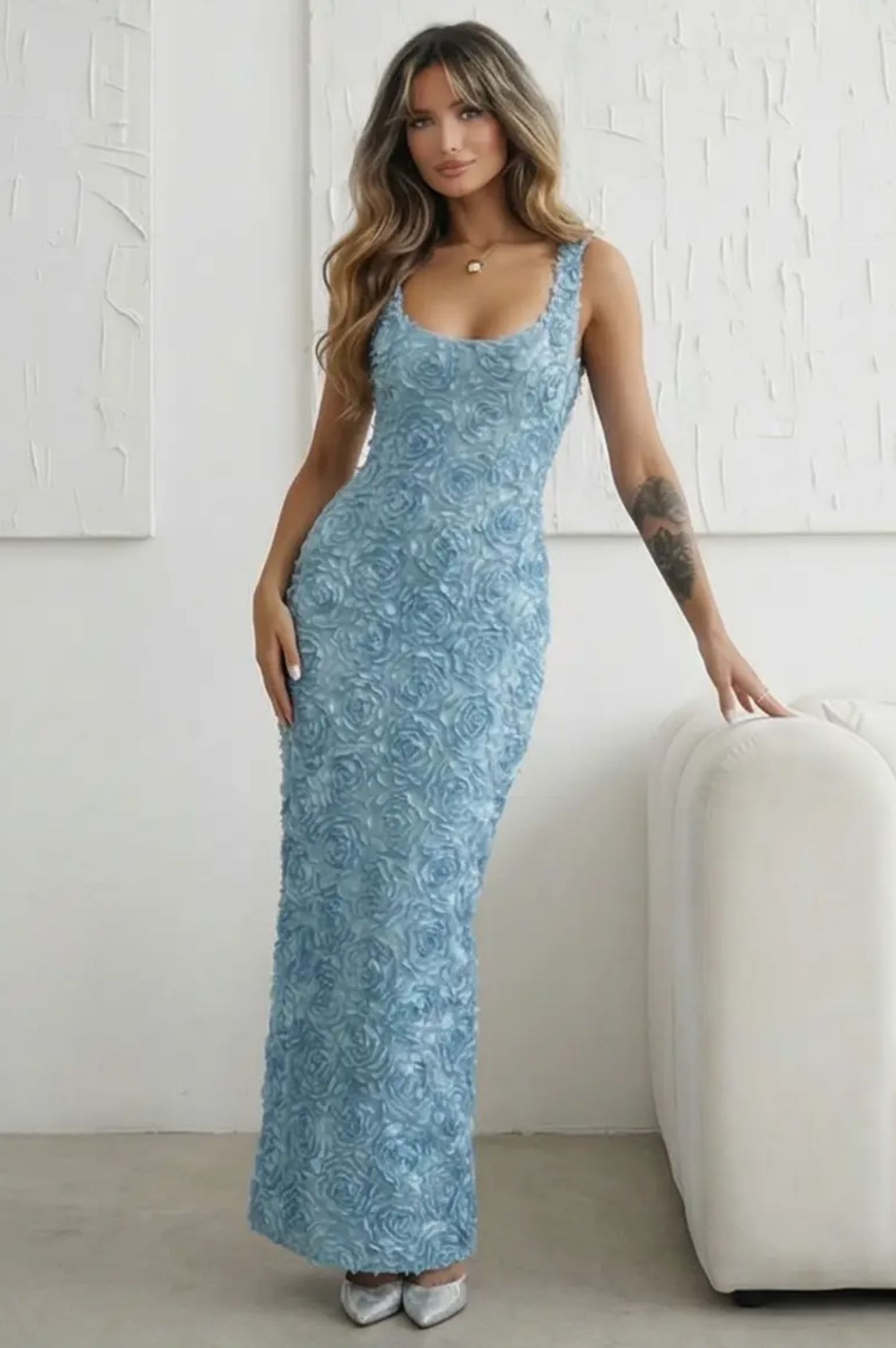 Κάντε μια αξέχαστη εμφάνιση με αυτό το μοναδικό μάξι φόρεμα που αποτελεί την επιτομή της σύγχρονης θηλυκότητας. Η ιδιαίτερη 3D ανάγλυφη υφή με τριαντάφυλλα το καθιστά το απόλυτο "it-dress" για γάμους, δεξιώσεις και επίσημα events. Εντυπωσιακό ύφασμα με ανάγλυφα τριαντάφυλλα που καλύπτουν όλο το φόρεμα, προσφέροντας βάθος και πολυτελή αίσθηση. Σχεδιασμένο να αγκαλιάζει ομοιόμορφα τη σιλουέτα, αναδεικνύοντας τις καμπύλες με κομψό τρόπο. Η διαχρονική λαιμόκοψη σε σχήμα "U" προσφέρει μια καθαρή και chic αισθητική. Προσδίδει επιβλητικότητα και ύψος, δημιουργώντας μια αέρινη αλλά σταθερή σιλουέτα.