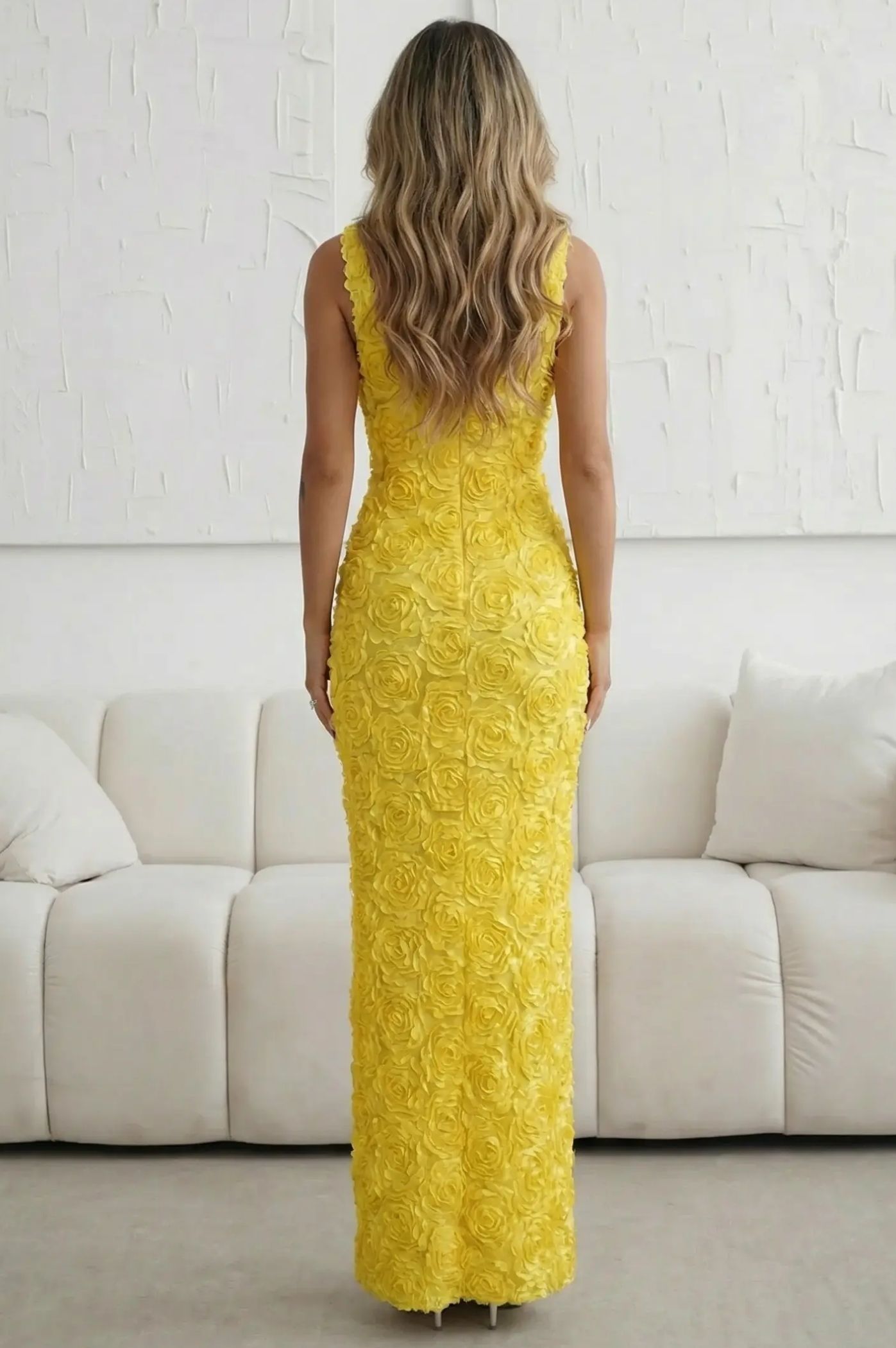 Κάντε μια αξέχαστη εμφάνιση με αυτό το μοναδικό μάξι φόρεμα που αποτελεί την επιτομή της σύγχρονης θηλυκότητας. Η ιδιαίτερη 3D ανάγλυφη υφή με τριαντάφυλλα το καθιστά το απόλυτο "it-dress" για γάμους, δεξιώσεις και επίσημα events. Εντυπωσιακό ύφασμα με ανάγλυφα τριαντάφυλλα που καλύπτουν όλο το φόρεμα, προσφέροντας βάθος και πολυτελή αίσθηση. Σχεδιασμένο να αγκαλιάζει ομοιόμορφα τη σιλουέτα, αναδεικνύοντας τις καμπύλες με κομψό τρόπο. Η διαχρονική λαιμόκοψη σε σχήμα "U" προσφέρει μια καθαρή και chic αισθητική. Προσδίδει επιβλητικότητα και ύψος, δημιουργώντας μια αέρινη αλλά σταθερή σιλουέτα.