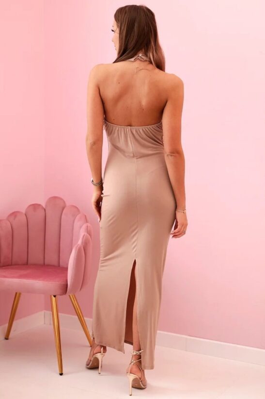 ΦΟΡΕΜΑ MAXI ΕΦΑΡΜΟΣΤΟ HALTER NECK – ΜΠΕΖ