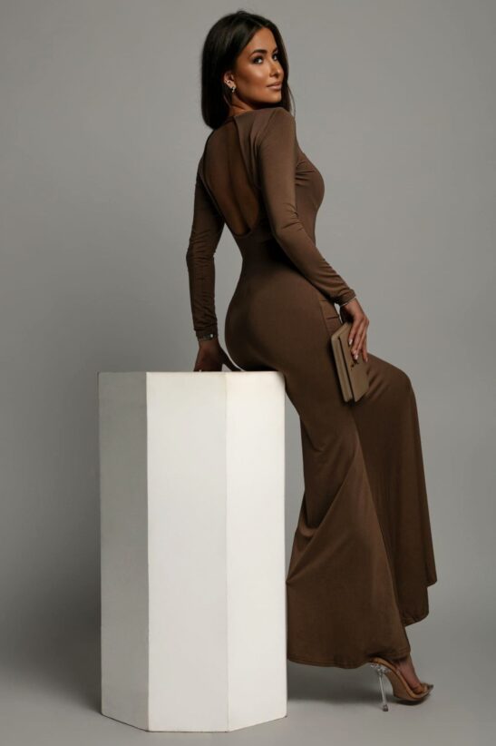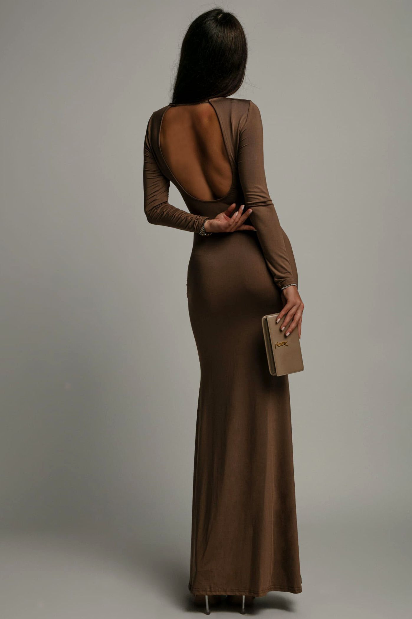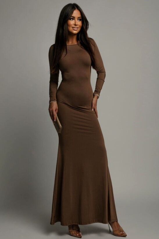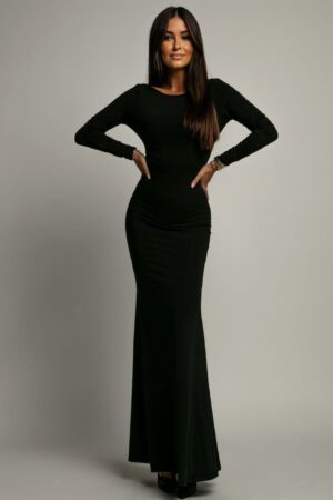 Αναδείξτε το στυλ σας με αυτό το εκθαμβωτικό maxi φόρεμα. Το φόρεμα διαθέτει μακριά μανίκια και στρογγυλή λαιμόκοψη μπροστά, προσφέροντας μια κομψή και κλασική εμφάνιση. Η ανοιχτή πλάτη δίνει έναν αέρα αισθησιασμού, διατηρώντας ταυτόχρονα την απόλυτη φινέτσα. Το ελαστικό ύφασμα τύπου bodycon εξασφαλίζει τέλεια εφαρμογή και άνεση καθ' όλη τη διάρκεια της νύχτας, ενώ το maxi μήκος δίνει ένα αέρα αίγλης. Συνδυάστε το με διακριτικά κοσμήματα και ένα clutch για μια αψεγάδιαστη εμφάνιση.