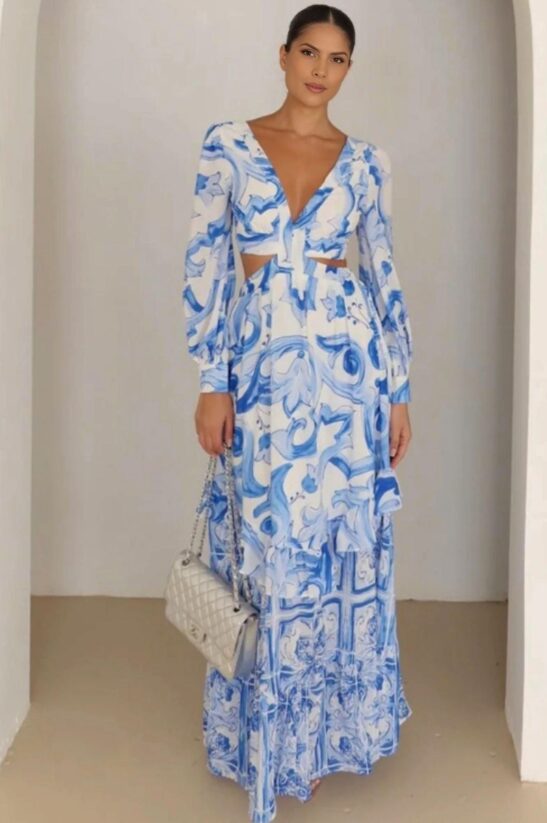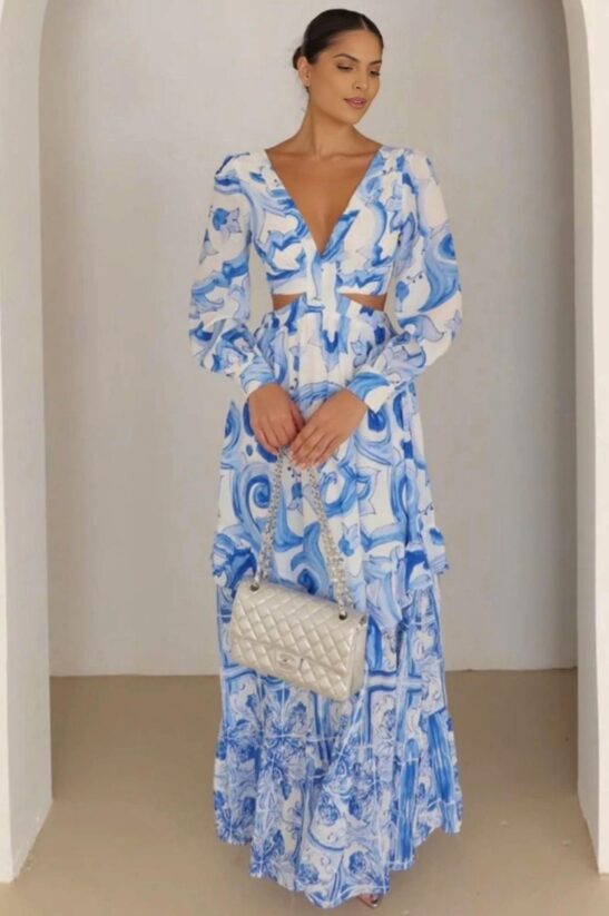 ΦΟΡΕΜΑ MAXI FLORAL ME CUT OUT – ΜΠΛΕ