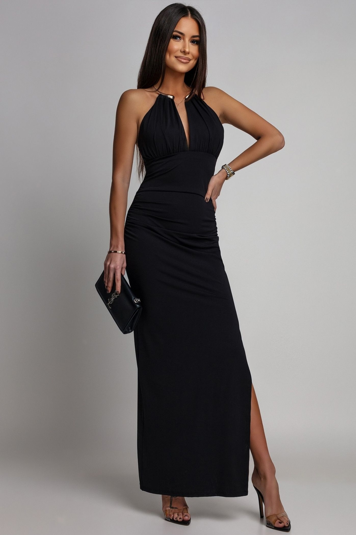 ΦΟΡΕΜΑ MAXI HALTER NECK ΜΕ ΑΝΟΙΧΤΗ ΠΛΑΤΗ – ΜΑΥΡΟ