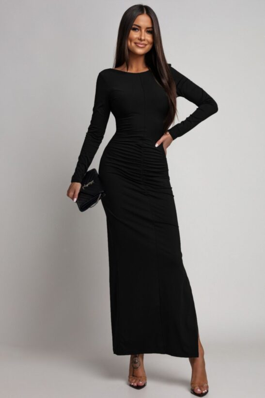 ΦΟΡΕΜΑ MAXI ΜΕ ΑΝΟΙΧΤΗ ΠΛΑΤΗ ΚΑΙ ΣΟΥΡΕΣ – ΜΑΥΡΟ