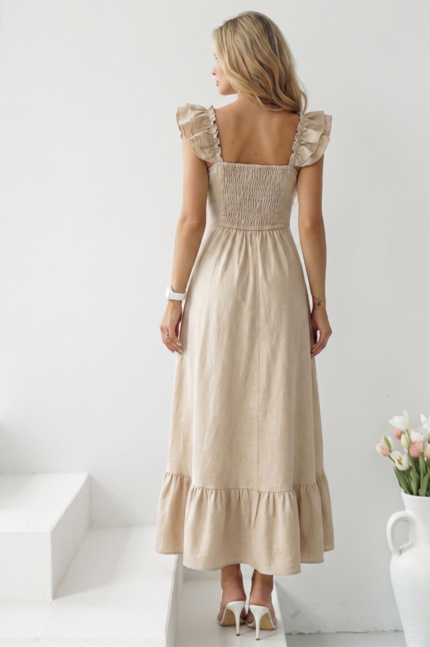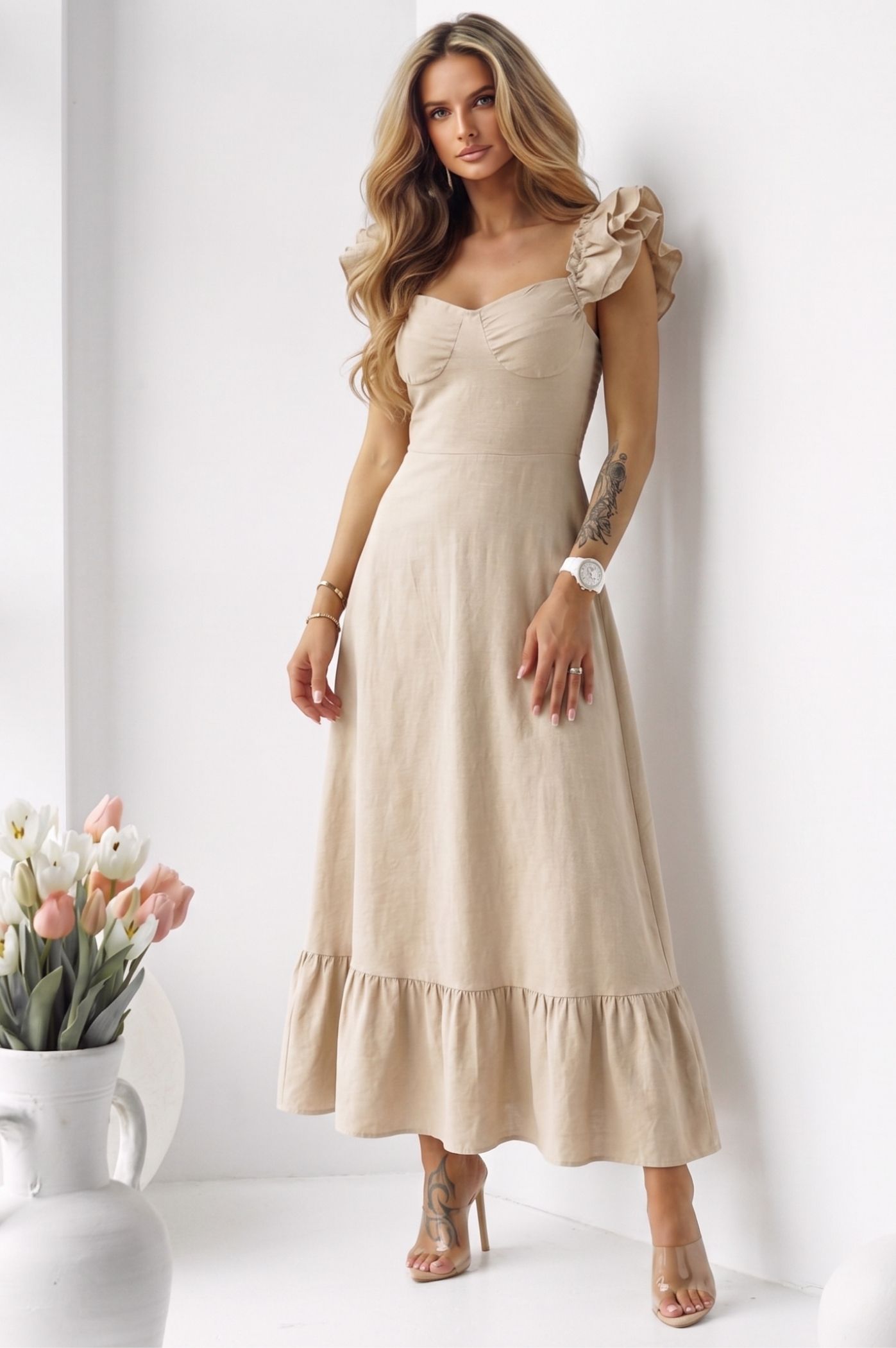Κλέψτε την παράσταση με αυτό το μοναδικό maxi φόρεμα. Ένα statement κομμάτι που συνδυάζει τον ρομαντισμό με τη δυναμική εμφάνιση, ιδανικό για να ξεχωρίσετε σε κάθε επίσημη ή κοινωνική σας εμφάνιση. Τα διακριτικά βολάν στους ώμους προσθέτουν μια θηλυκή και παιχνιδιάρικη διάθεση, ενώ το βολάν στο τελείωμα χαρίζει κίνηση και χάρη στη σιλουέτα. Το μπούστο σε στυλ κορσέ αγκαλιάζει και αναδεικνύει το στήθος, προσφέροντας μια κομψή και σταθερή εφαρμογή. Η maxi γραμμή του εξασφαλίζει άνεση, καθιστώντας το ιδανικό για γάμους, βαπτίσεις ή καλοκαιρινά events.