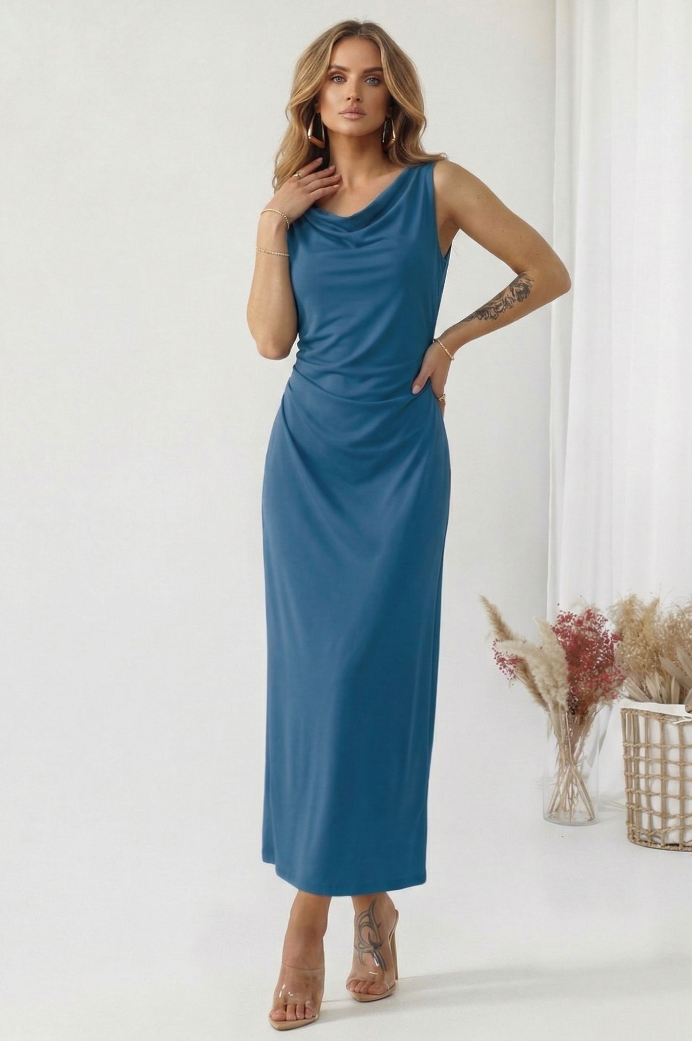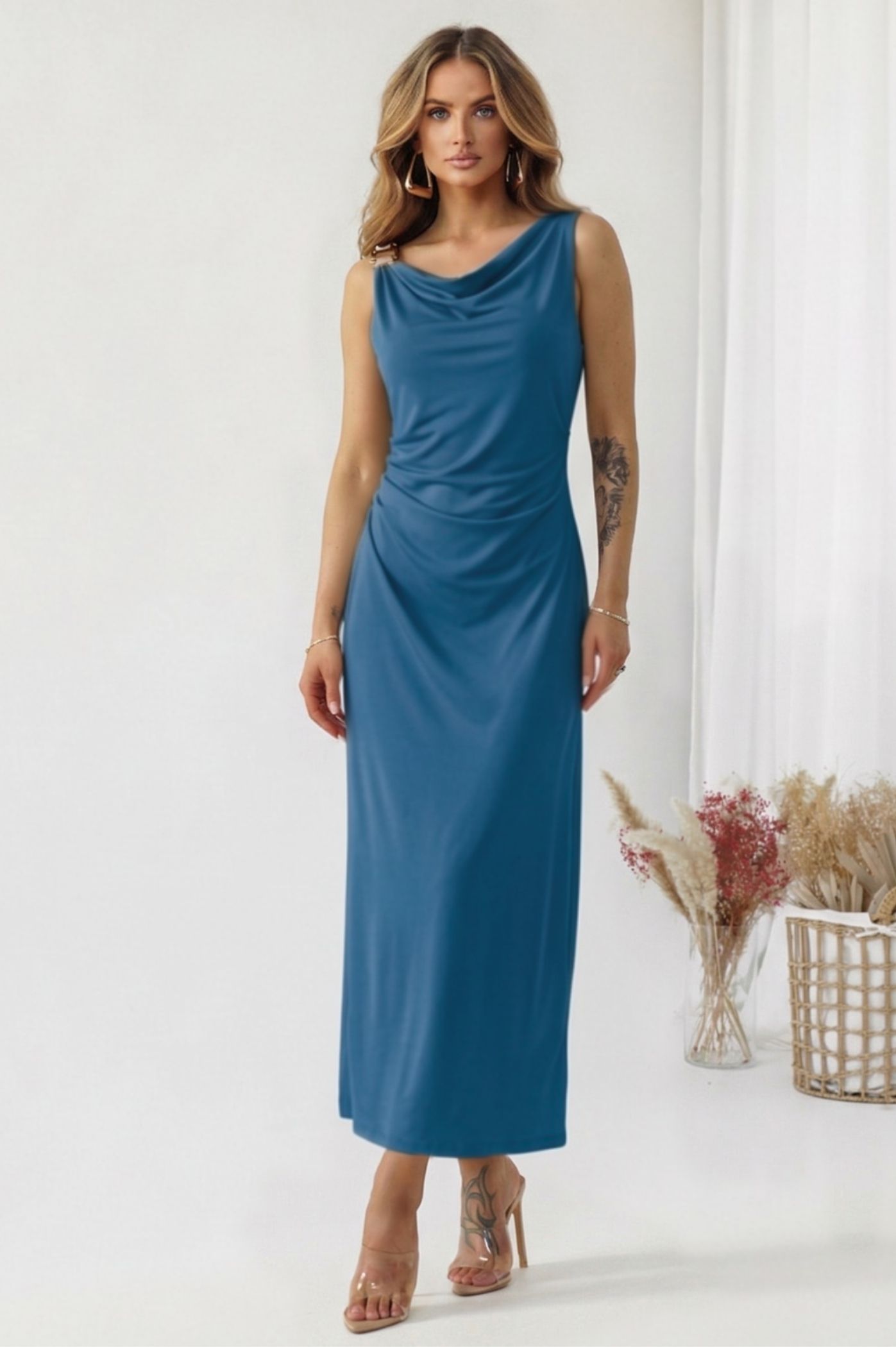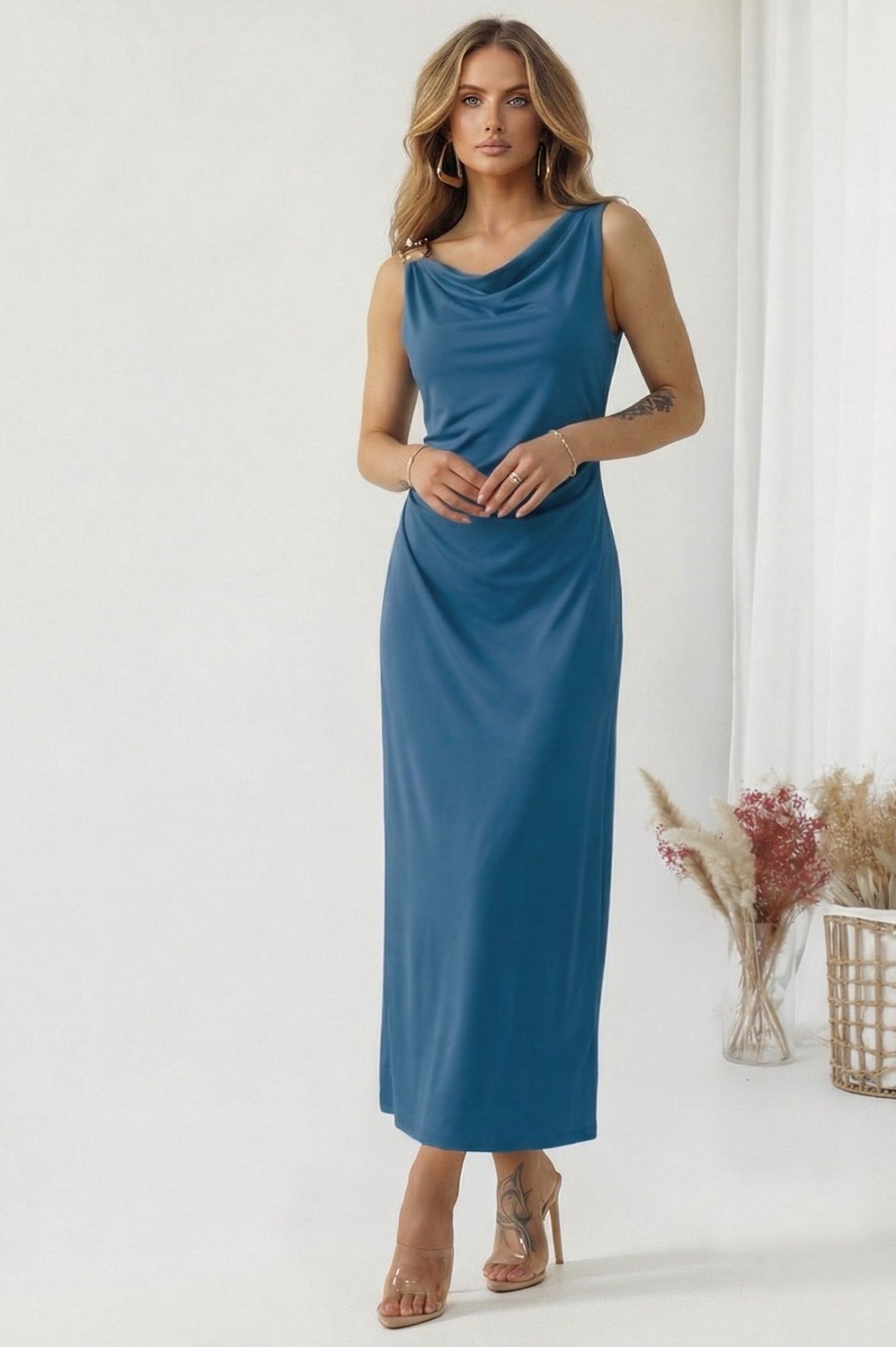 Εντυπωσιάστε σε κάθε σας εμφάνιση με αυτό το διαχρονικό και ταυτόχρονα μοντέρνο μάξι φόρεμα. Ένα κομμάτι που εκπέμπει αυτοπεποίθηση και θηλυκότητα, ιδανικό για τις πιο ξεχωριστές σας στιγμές. Η κομψή ντραπέ λαιμόκοψη χαρίζει μια αίσθηση πολυτέλειας και αναδεικνύει το μπούστο με έναν διακριτικό και chic τρόπο. Μια ιδιαίτερη λεπτομέρεια που προσθέτει λάμψη και λειτουργεί ως κόσμημα, αναβαθμίζοντας αμέσως το στυλ σας. Οι λεπτές πτυχώσεις (ντραπέ) στο πλάι σμιλεύουν τη σιλουέτα, προσφέροντας μια άψογη και θηλυκή εφαρμογή. Η μακριά γραμμή του προσδίδει ύψος και μια αριστοκρατική κίνηση σε κάθε σας βήμα. Κατασκευασμένο από ελαστικό, μαλακό ύφασμα που αγκαλιάζει το σώμα χωρίς να περιορίζει την κίνηση.
