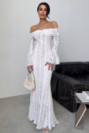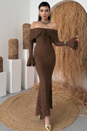 Αναδείξτε το ρομαντικό και boho στυλ σας με αυτό το υπέροχο μάξι φόρεμα. Το φόρεμα διαθέτει ένα κομψό off-shoulder σχέδιο που τονίζει τους ώμους και το ντεκολτέ, ενώ η περίτεχνη δαντέλα προσδίδει μια θηλυκή και vintage πινελιά. Τα αέρινα μανίκια καμπάνα προσθέτουν κίνηση και μια παιχνιδιάρικη διάθεση. Η μάξι γραμμή του και η ρευστότητα του υφάσματος εξασφαλίζουν άνεση και κομψότητα. Είναι η τέλεια επιλογή για καλοκαιρινές εκδηλώσεις, γάμους, βαπτίσεις, ή άλλες κομψές casual εμφανίσεις.