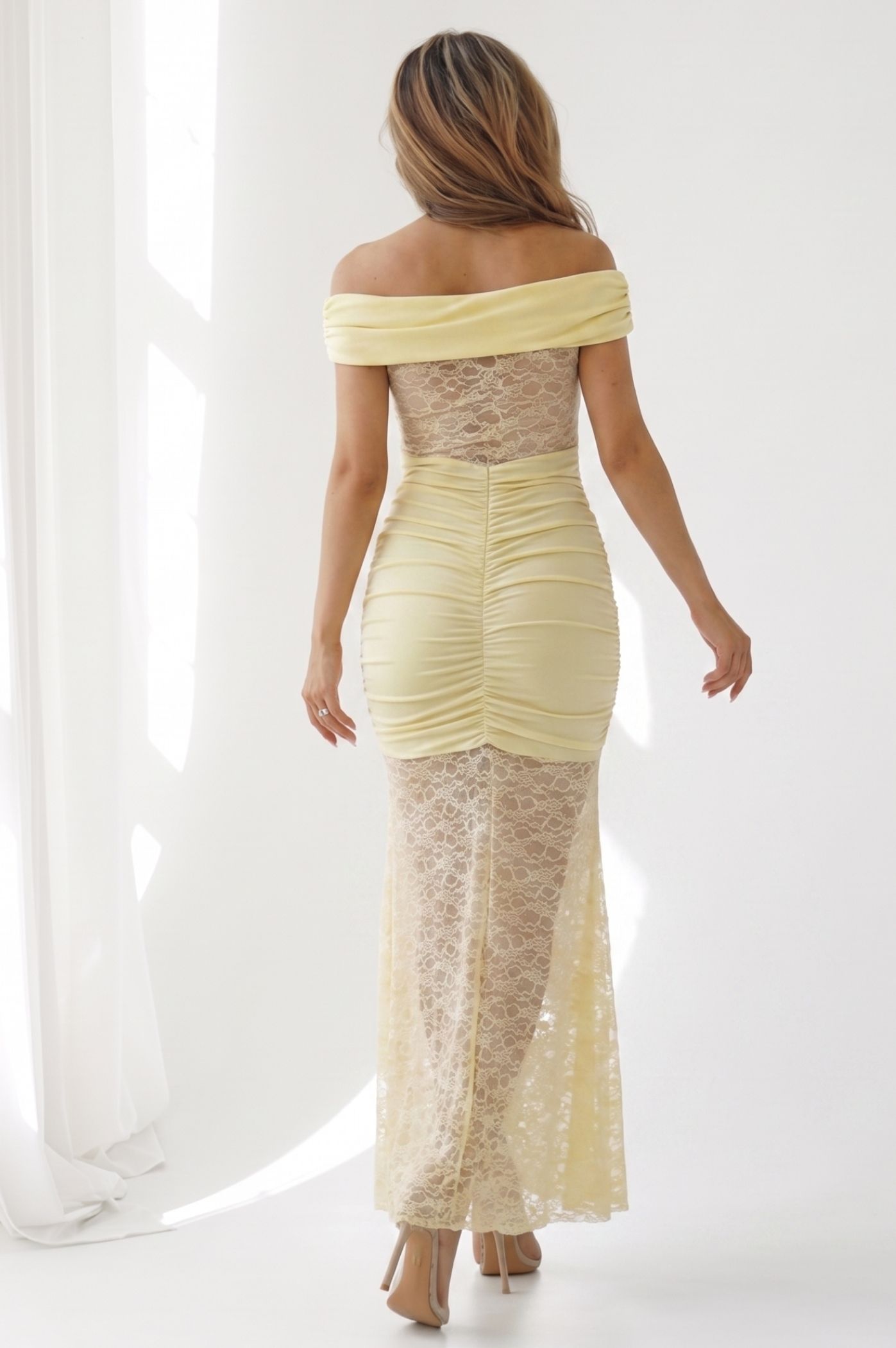 ΦΟΡΕΜΑ MAXI OFF SHOULDER ΜΕ ΔΑΝΤΕΛΑ – ΚΙΤΡΙΝΟ
