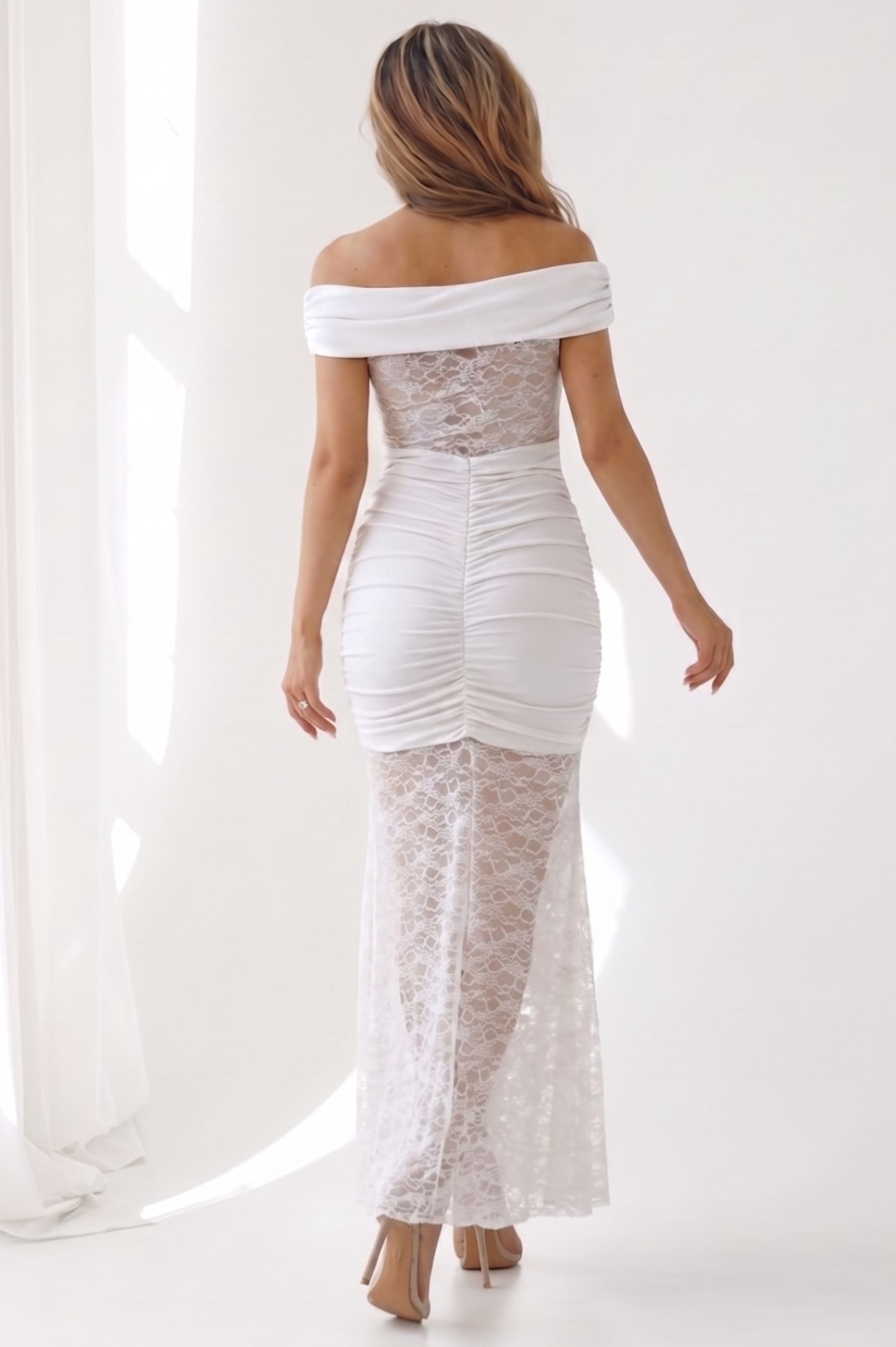 ΦΟΡΕΜΑ MAXI OFF SHOULDER ΜΕ ΔΑΝΤΕΛΑ – ΛΕΥΚΟ