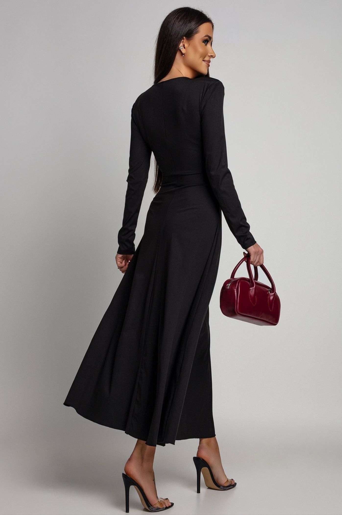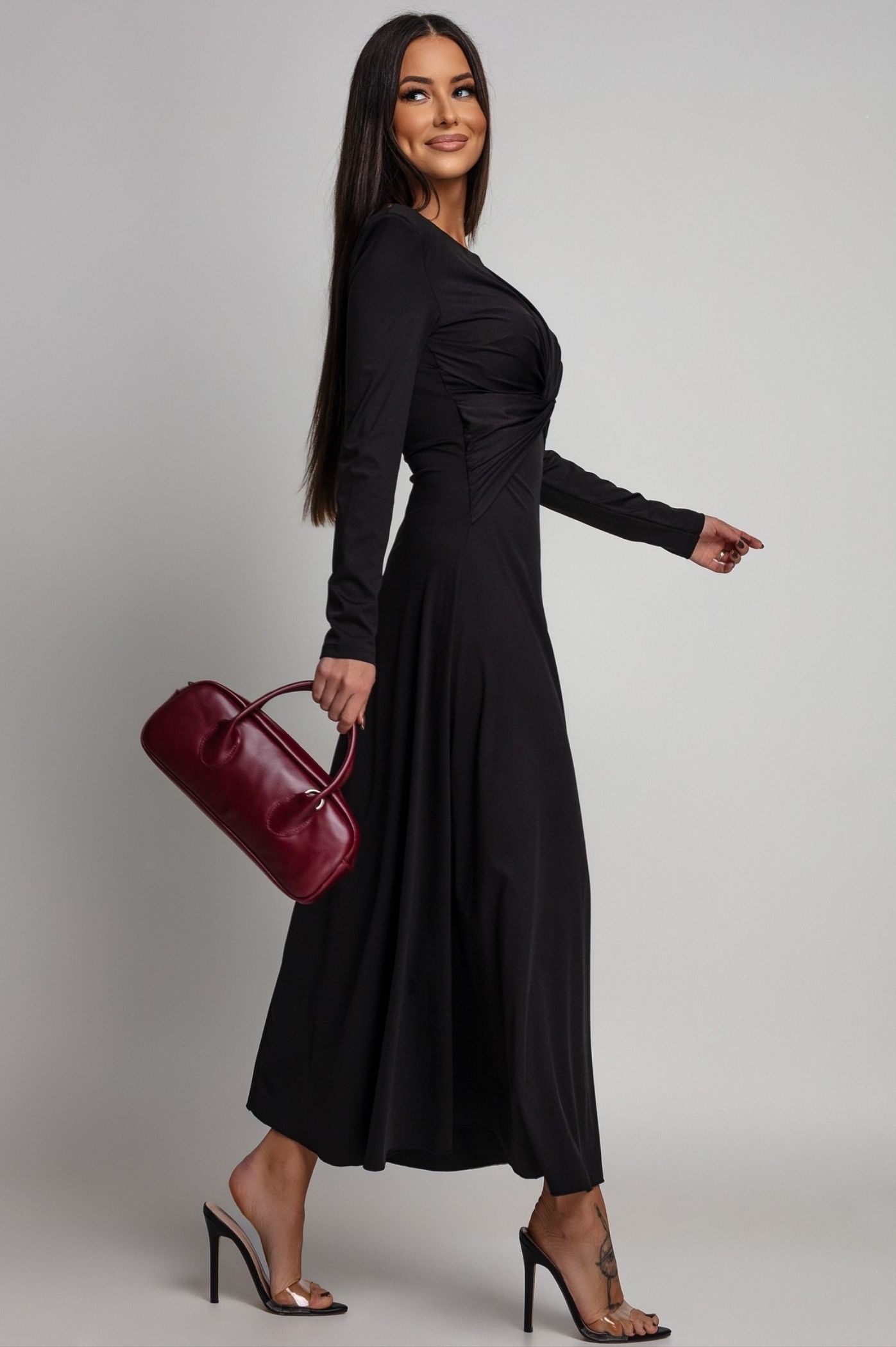 Αυτό το μάξι φόρεμα είναι η επιτομή της διακριτικής κομψότητας. Κατασκευασμένο από ελαστικό ύφασμα, εξασφαλίζει άνετη εφαρμογή και ρέουσα κίνηση. Το κεντρικό κόμπο στο μπούστο και η Α γραμμή του φορέματος κολακεύουν τη σιλουέτα, ενώ το μακρύ μανίκι το καθιστά ιδανικό για φθινοπωρινές και χειμερινές επίσημες εμφανίσεις, γάμους ή κομψές καθημερινές περιστάσεις.