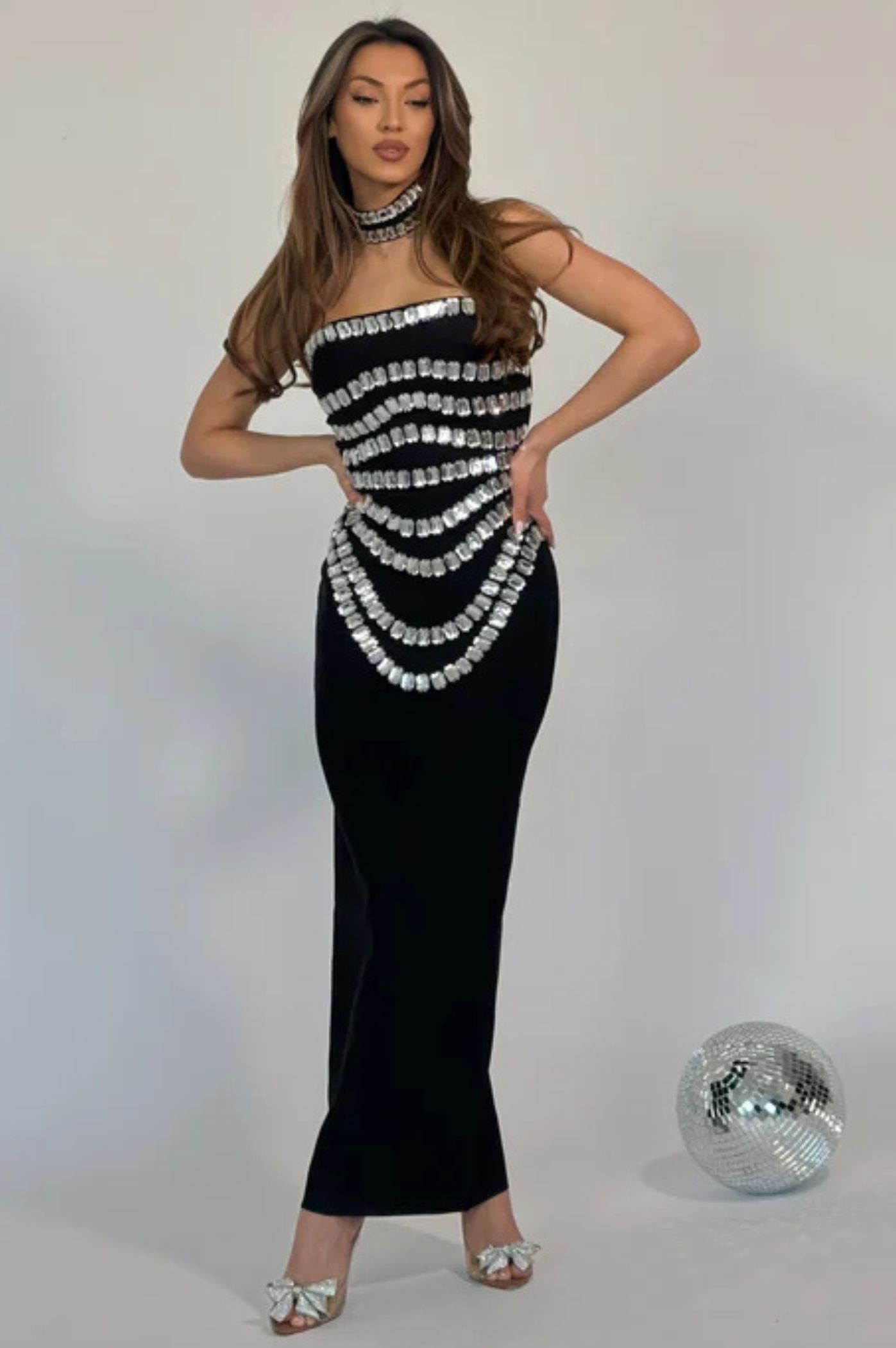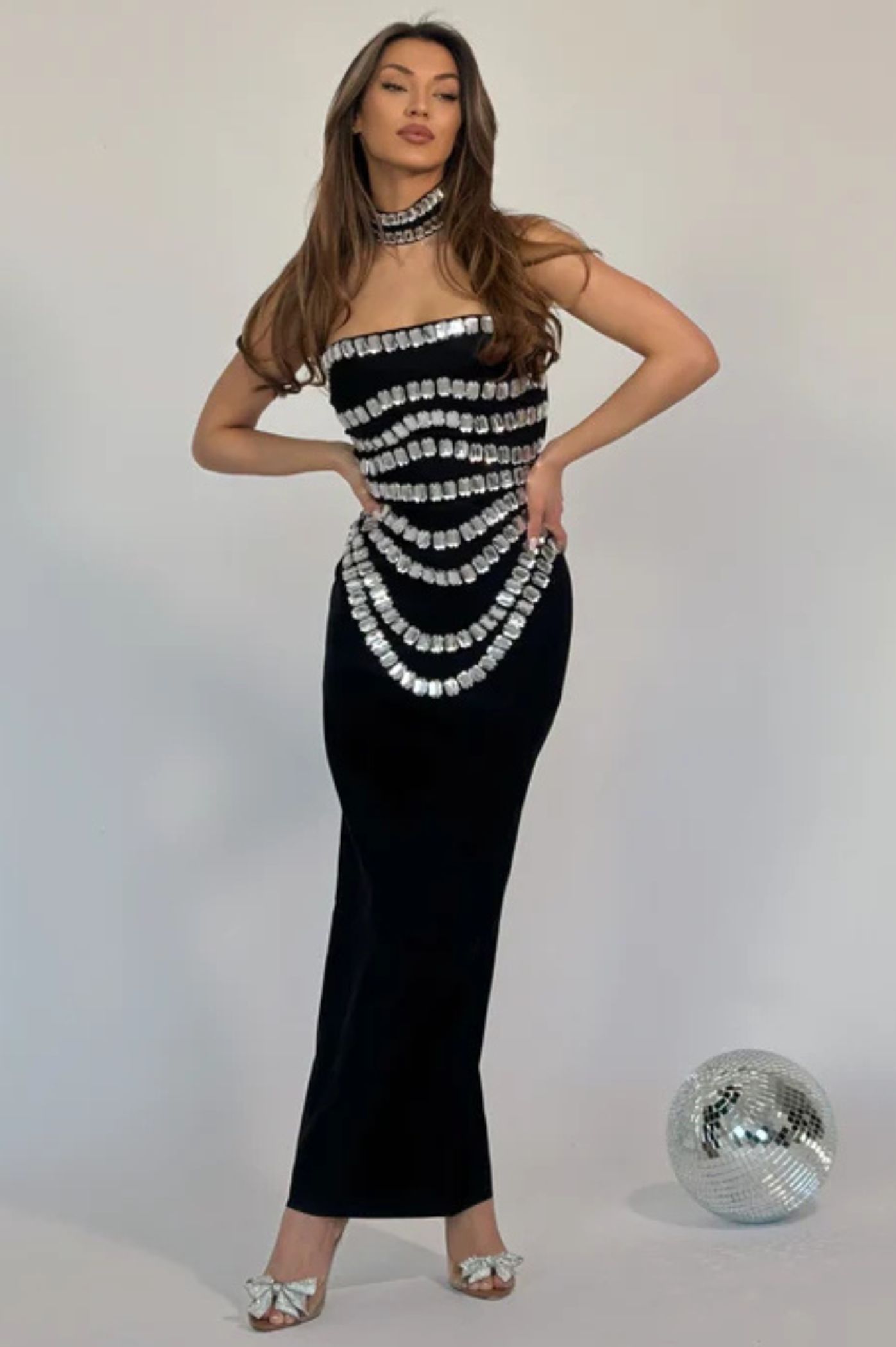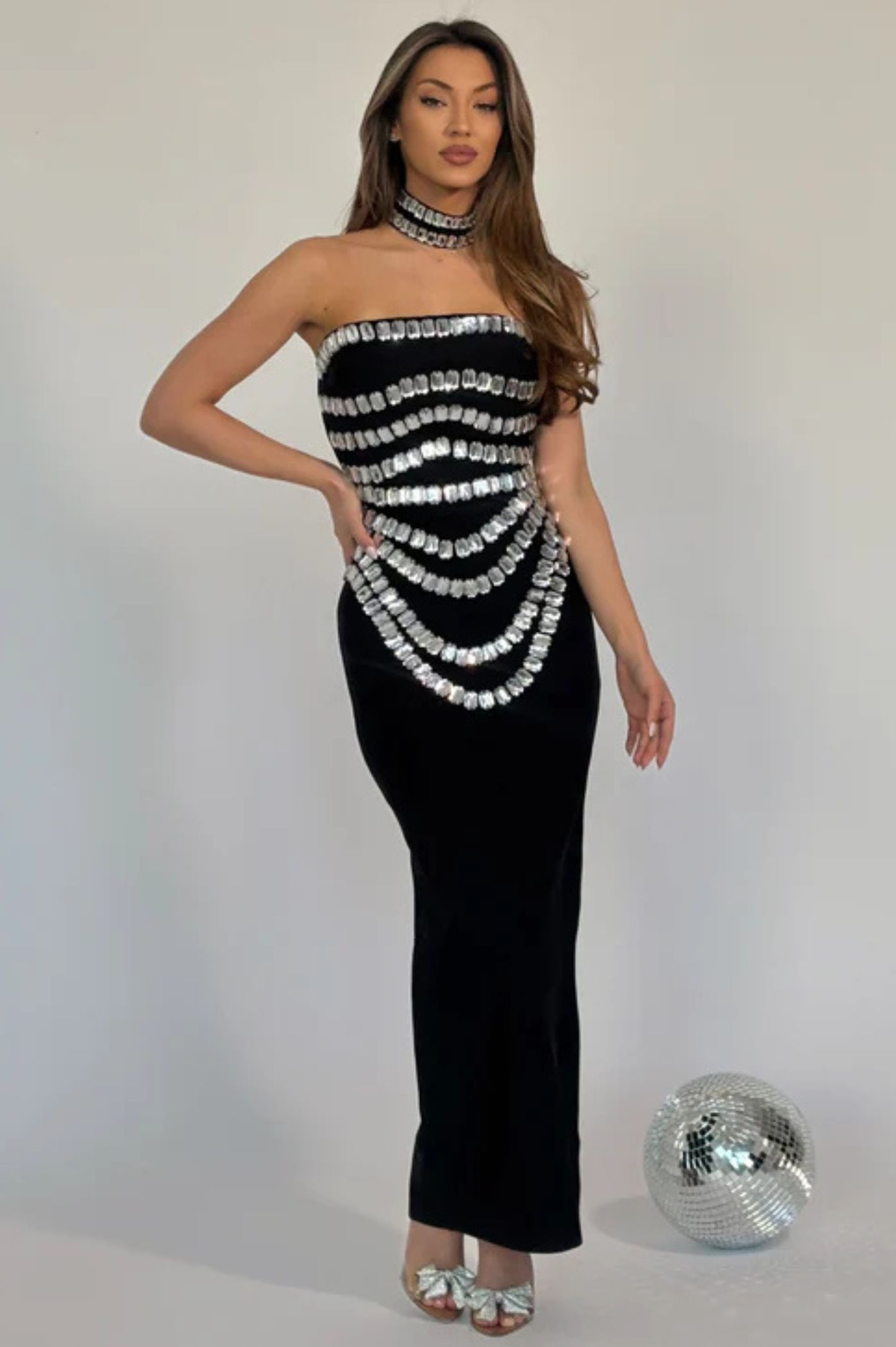 ΦΟΡΕΜΑ MAXI STRAPLESS ΜΕ STRASS ΚΑΙ CHOKER – ΜΑΥΡΟ