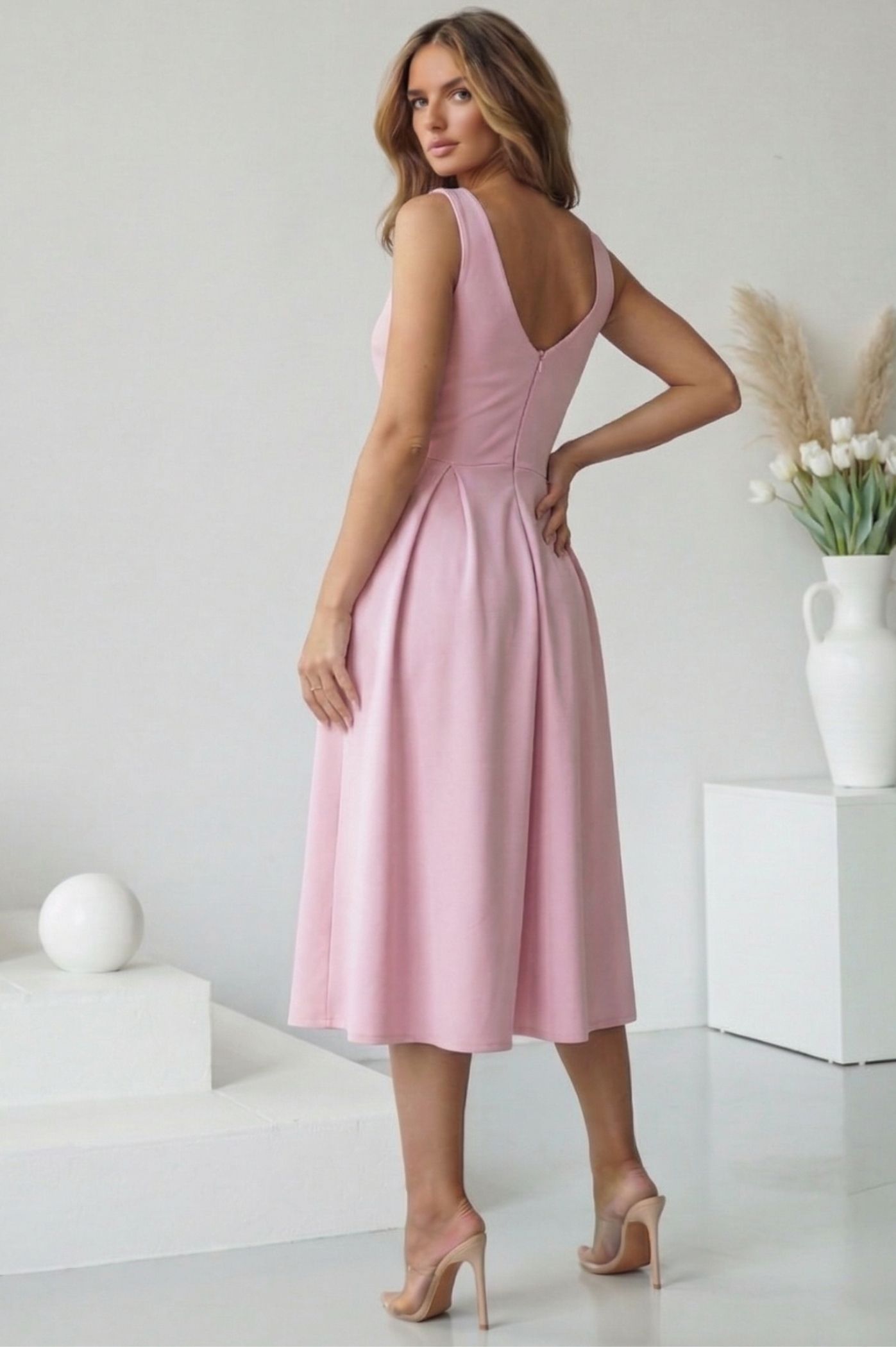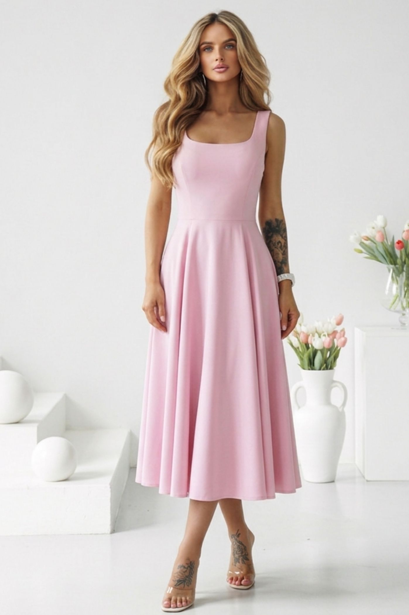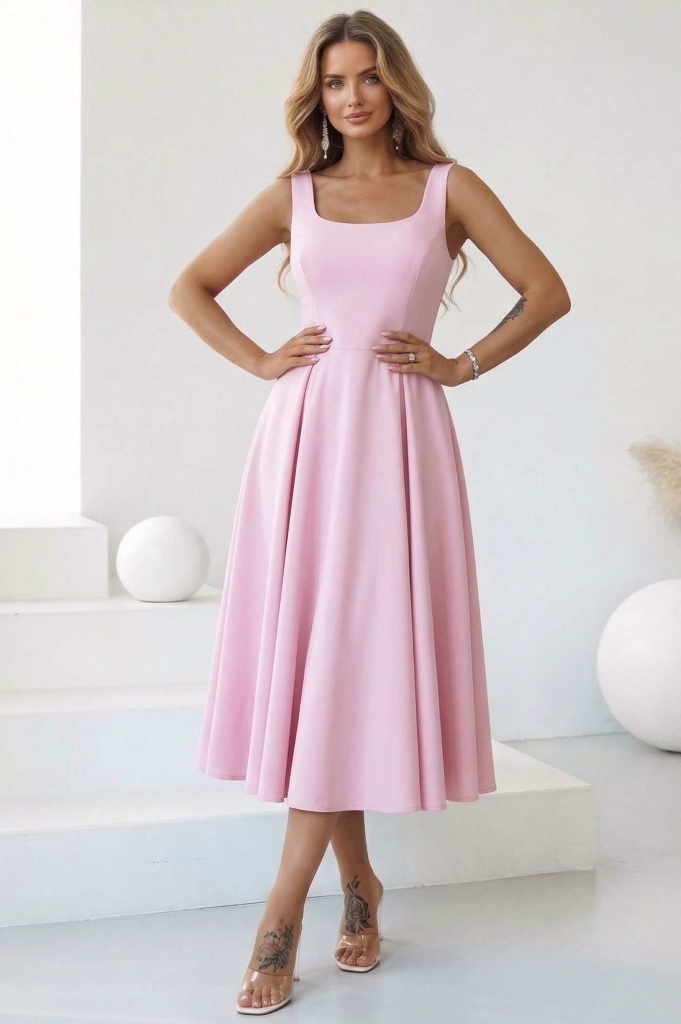 Αναδείξτε τη θηλυκότητά σας με αυτό το υπέροχο midi αμάνικο φόρεμα, μια επιλογή που συνδυάζει τη ρομαντική διάθεση με τη σοφιστικέ κομψότητα. Αυτό το φόρεμα είναι η ιδανική λύση για κάθε επίσημη ή ημι-επίσημη περίσταση, από μια βάπτιση μέχρι ένα cocktail party. Η τετράγωνη λαιμόκοψη προσφέρει ένα μοντέρνο και καθαρό look, αναδεικνύοντας υπέροχα το ντεκολτέ και τους ώμους. Η φούστα ανοίγει σε γραμμή άλφα με διακριτικές πιέτες, χαρίζοντας κίνηση και αέρινη αίσθηση, ενώ κολακεύει κάθε τύπο σιλουέτας. Το κομψό μήκος κάτω από το γόνατο προσδίδει μια αριστοκρατική νότα, κάνοντας το κατάλληλο για όλες τις ώρες της ημέρας. Η καθαρή του γραμμή επιτρέπει να το "μεταμορφώσετε" ανάλογα με τα αξεσουάρ που θα επιλέξετε.