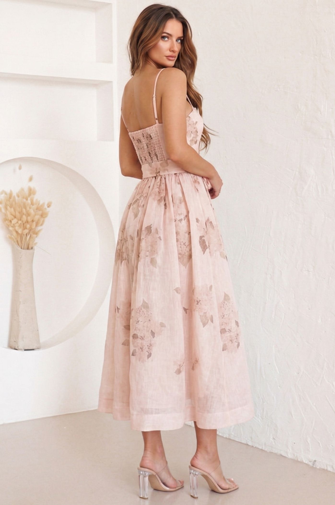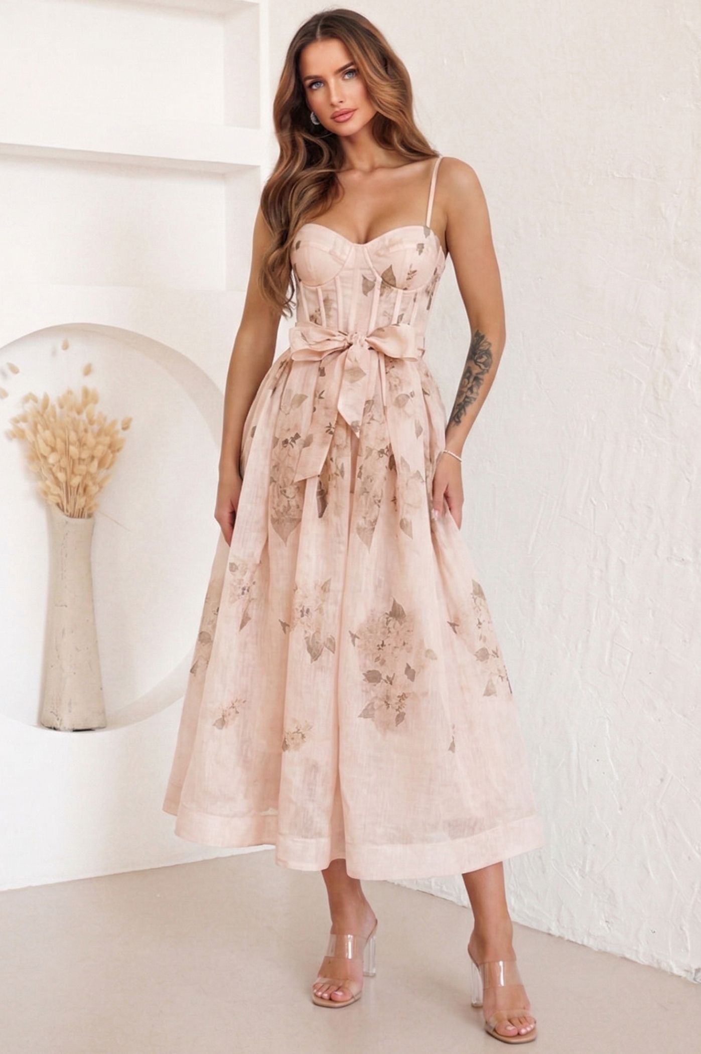ΦΟΡΕΜΑ MIDI CORSET FLORAL ΜΕ ΖΩΝΗ – ΡΟΖ