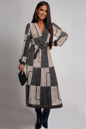 ΦΟΡΕΜΑ MIDI ΚΡΟΥΑΖΕ ΜΕ ΖΩΝΗ ΣΤΗ ΜΕΣΗ GEOMETRIC PRINT – ΚΑΦΕ