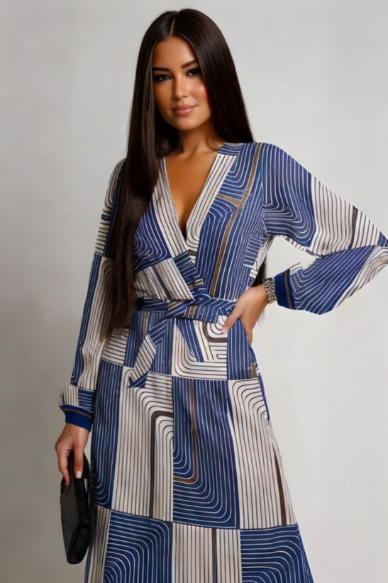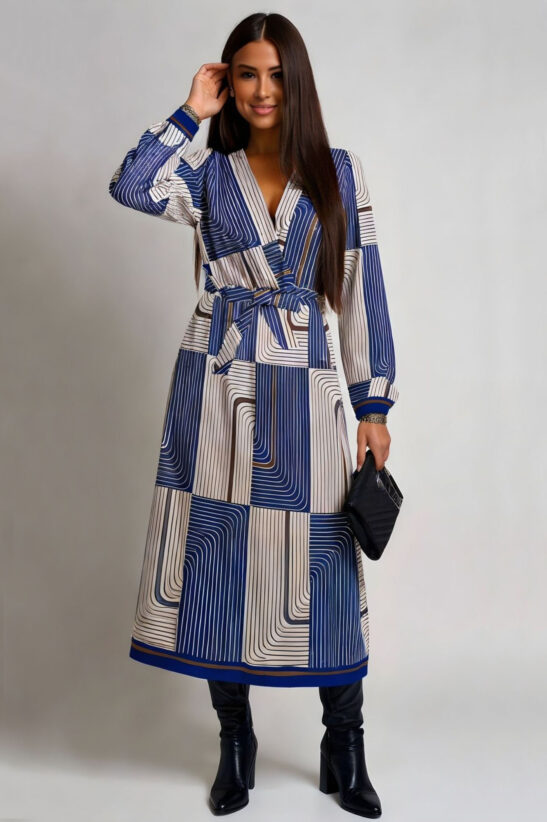 ΦΟΡΕΜΑ MIDI ΚΡΟΥΑΖΕ ΜΕ ΖΩΝΗ ΣΤΗ ΜΕΣΗ GEOMETRIC PRINT – ΜΠΛΕ