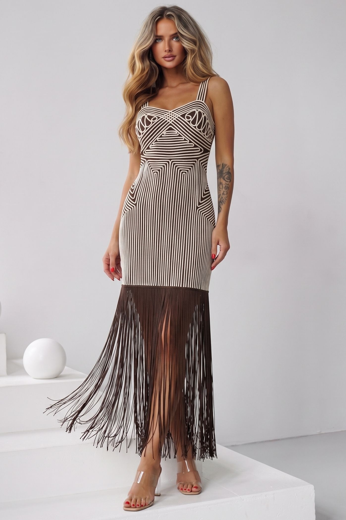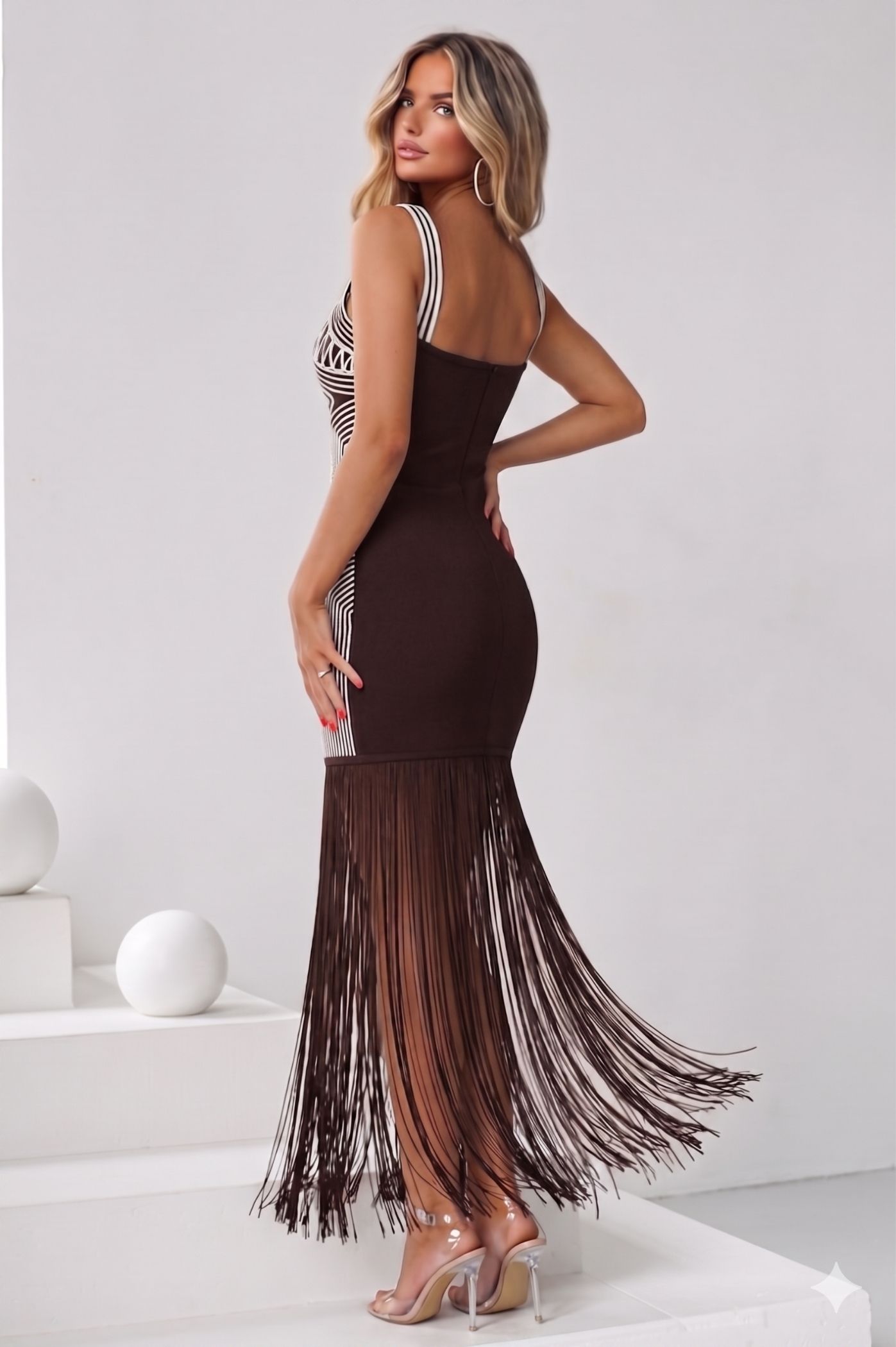 Κλέψτε την παράσταση με αυτό το μοναδικό midi φόρεμα, που συνδυάζει την υψηλή αισθητική με την απόλυτη άνεση. Με το ιδιαίτερο γεωμετρικό του μοτίβο και τα εντυπωσιακά κρόσσια, είναι η ιδανική επιλογή για γυναίκες που θέλουν να ξεχωρίζουν σε κάθε επίσημη ή βραδινή εμφάνιση. Το φόρεμα διαθέτει ένα ιδιαίτερο γεωμετρικό κέντημα, που δημιουργεί ένα οπτικό αποτέλεσμα βάθους, τονίζοντας μοναδικά τις γραμμές του σώματος. Το τελείωμα με μακριά, αέρινα κρόσσια προσδίδει μια δυναμική κίνηση στο κάθε σας βήμα, συνθέτοντας ένα look με χαρακτήρα και πολυτέλεια. Διαθέτει φαρδιές τιράντες που εξασφαλίζουν τέλεια εφαρμογή και στήριξη, προσφέροντας παράλληλα μια κομψή και θηλυκή σιλουέτα. Η midi γραμμή του συνδυάζει το κλασικό με το μοντέρνο, κάνοντάς το κατάλληλο για κοκτέιλ πάρτι, δεξιώσεις ή βραδινές εξόδους.