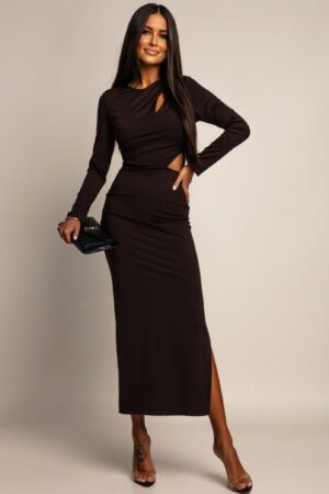 Αναδείξτε το τολμηρό και σύγχρονο στυλ σας με αυτό το εντυπωσιακό midi φόρεμα. Η ελαστική του ύφανση αγκαλιάζει τη σιλουέτα, προσφέροντας άνεση και άψογη εφαρμογή, ενώ τα στρατηγικά τοποθετημένα cut-outs στο μπούστο προσθέτουν μια σέξι και μοντέρνα πινελιά. Το φόρεμα διαθέτει μακριά μανίκια και ένα κολακευτικό midi μήκος, κάνοντάς το ιδανικό για μια ποικιλία από εμφανίσεις, από βραδινές εξόδους μέχρι κοκτέιλ πάρτι.