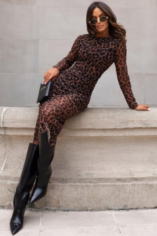 Κάνε εντύπωση με αυτό το εκρηκτικό animal print φόρεμα που συνδυάζει αισθησιασμό και δυναμισμό. Με διακριτικές διαφάνειες και εφαρμοστή γραμμή που αγκαλιάζει το σώμα, είναι το απόλυτο κομμάτι για εμφανίσεις που δεν περνούν απαρατήρητες. Το μοτίβο χαρίζει ένταση και στυλ, ιδανικό για fashionistas που τολμούν!