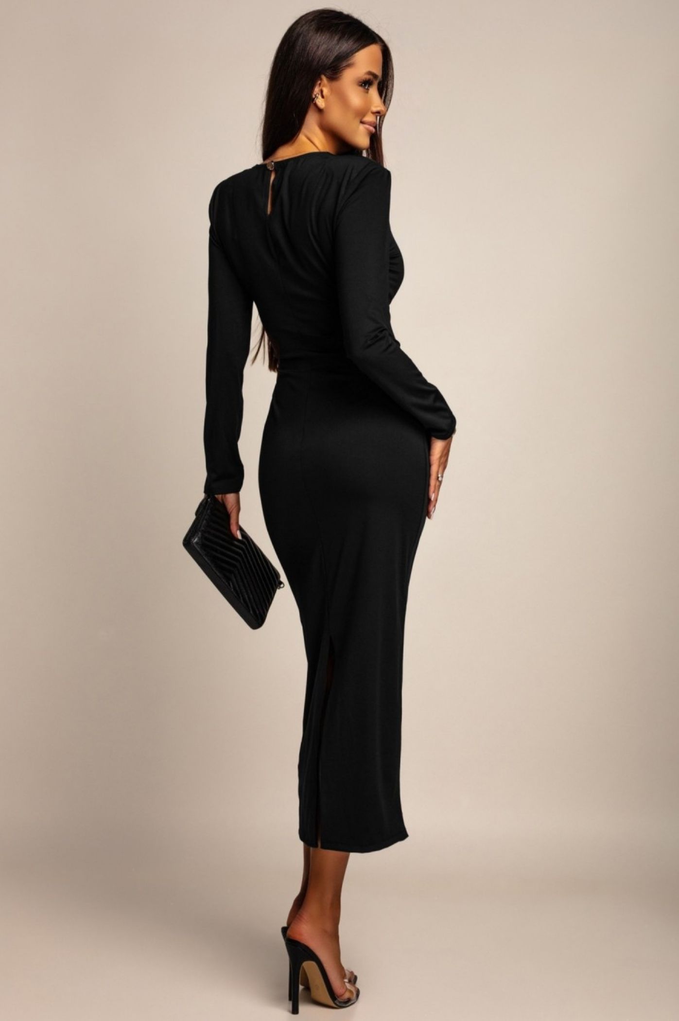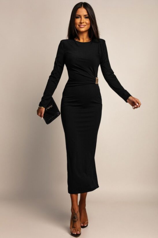 Αναδείξτε το δυναμικό και κομψό σας στυλ με αυτό το εντυπωσιακό μίντι φόρεμα. Το φόρεμα διαθέτει μια κολακευτική pencil γραμμή που αγκαλιάζει τη σιλουέτα, ενώ οι βάτες στους ώμους δημιουργούν μια δυναμική και στιβαρή εμφάνιση. Η σούρα στη μέση τονίζει την περιφέρεια και προσθέτει μια ενδιαφέρουσα λεπτομέρεια που κολακεύει κάθε σωματότυπο. Ιδανικό για το γραφείο, μια βραδινή έξοδο ή μια κομψή casual εμφάνιση.