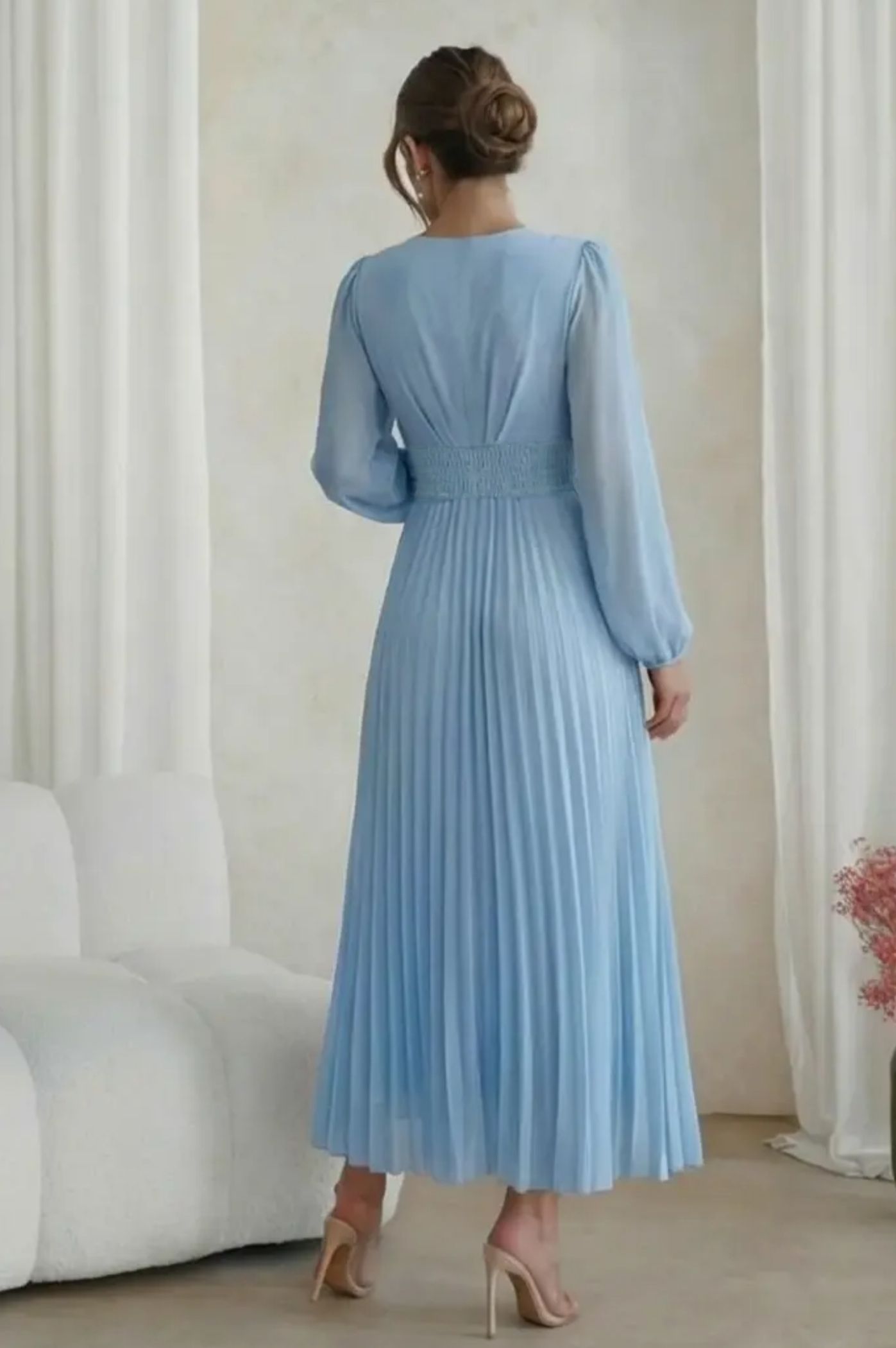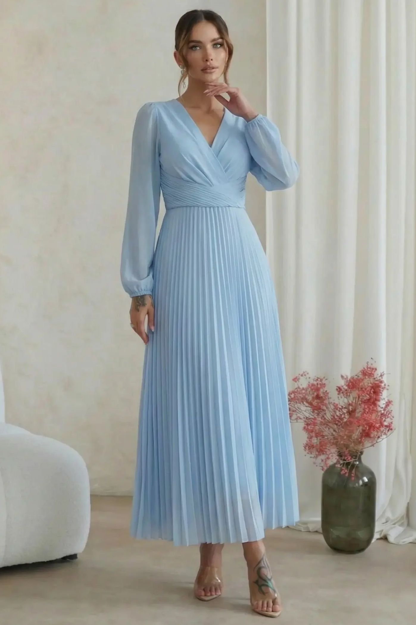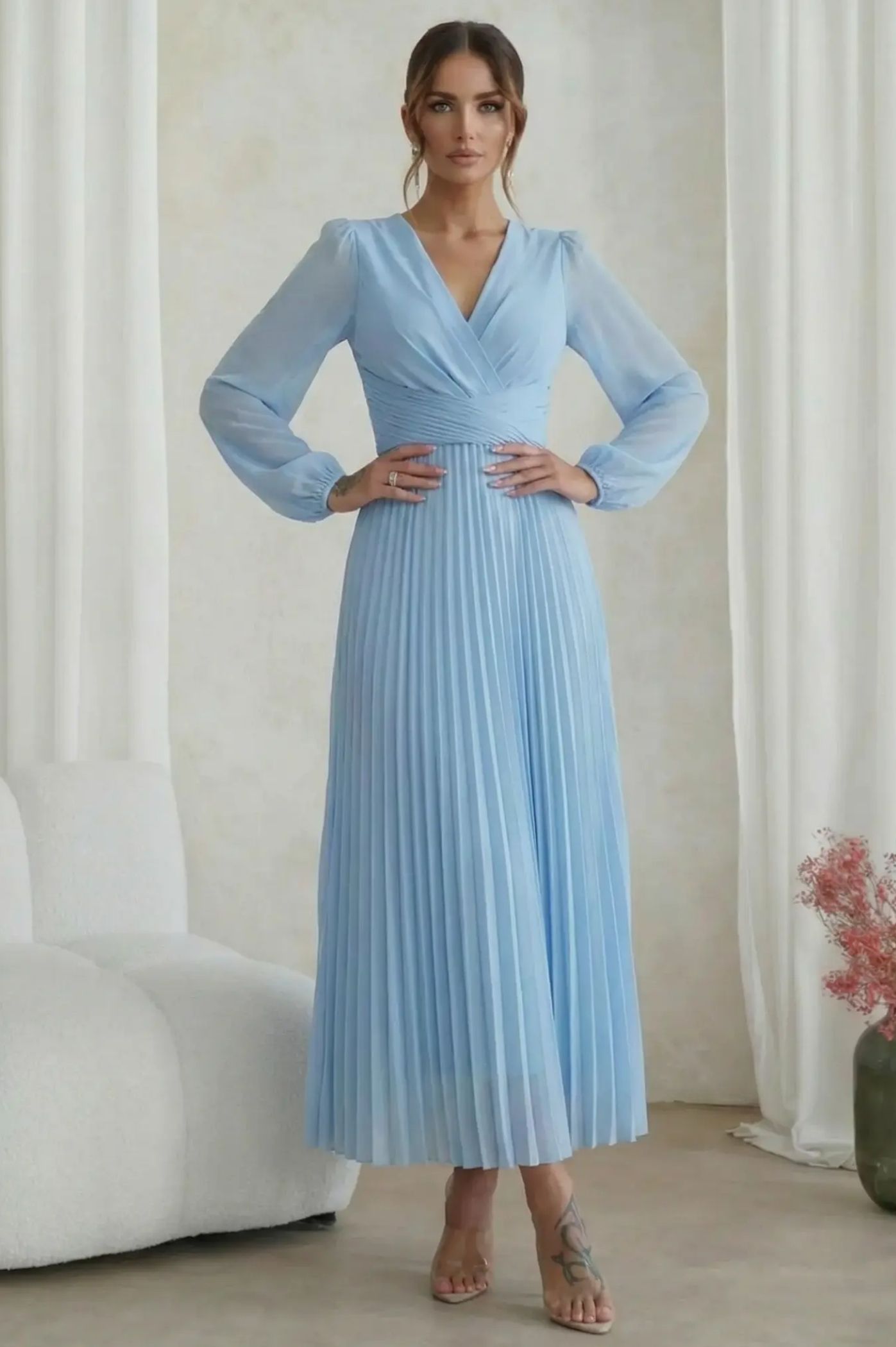 Ανακαλύψτε την απόλυτη ρομαντική εμφάνιση με το μίντι πλισέ φόρεμα. Με αέρινη αίσθηση και σικ λεπτομέρειες, είναι η τέλεια πρόταση για κουμπάρες, νονές ή επίσημες κοινωνικές εκδηλώσεις. Το κρουαζέ σχέδιο στο πάνω μέρος δημιουργεί μια θηλυκή λαιμόκοψη V και τονίζει όμορφα τη μέση. Η εντυπωσιακή πλισέ φούστα χαρίζει μοναδική κίνηση και μια αριστοκρατική νότα σε κάθε σας βήμα. Τα μακριά διάφανα μανίκια με ελαφρύ όγκο προσδίδουν μια σοφιστικέ αισθητική, ιδανική για απογευματινά events.
