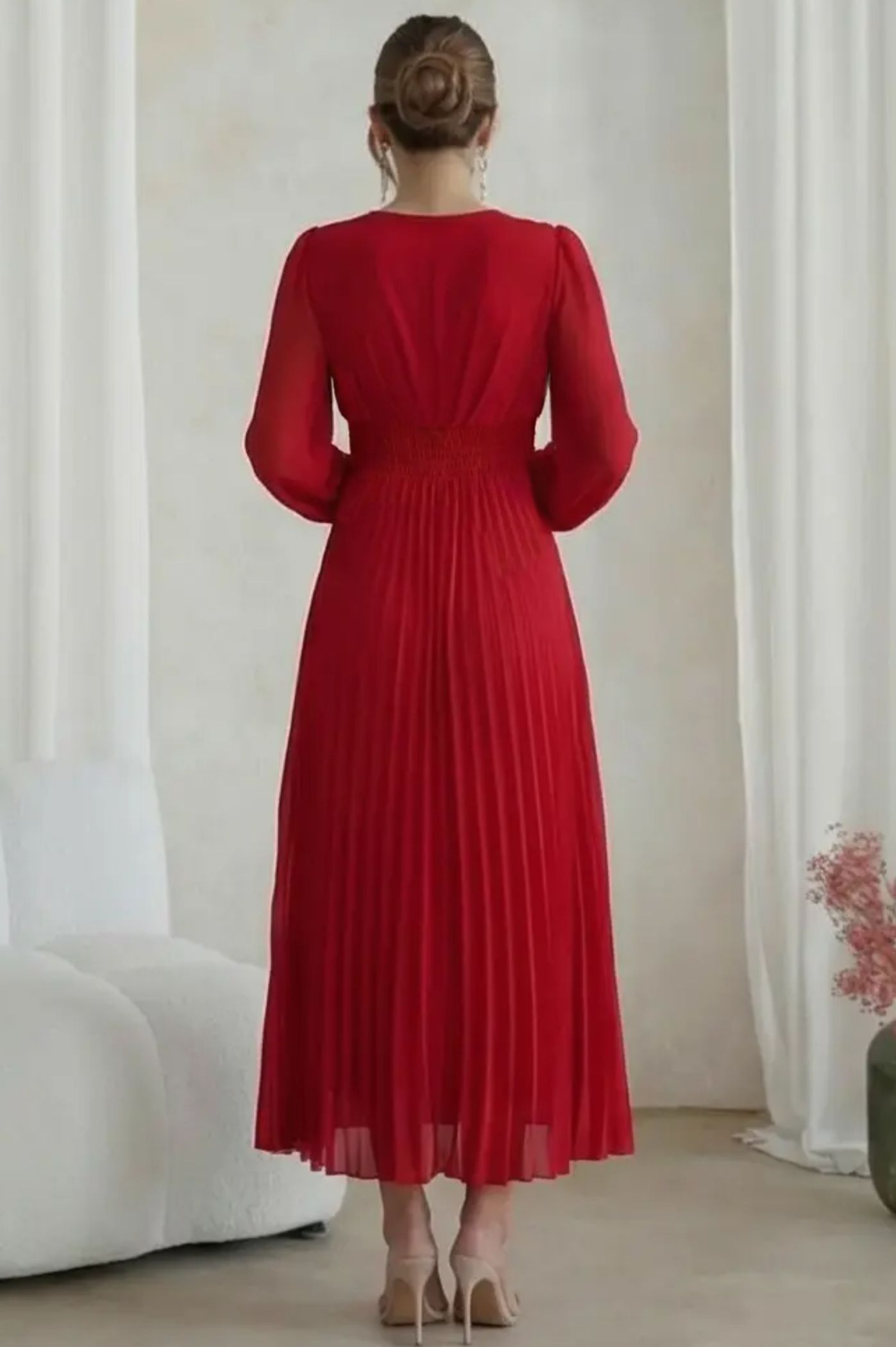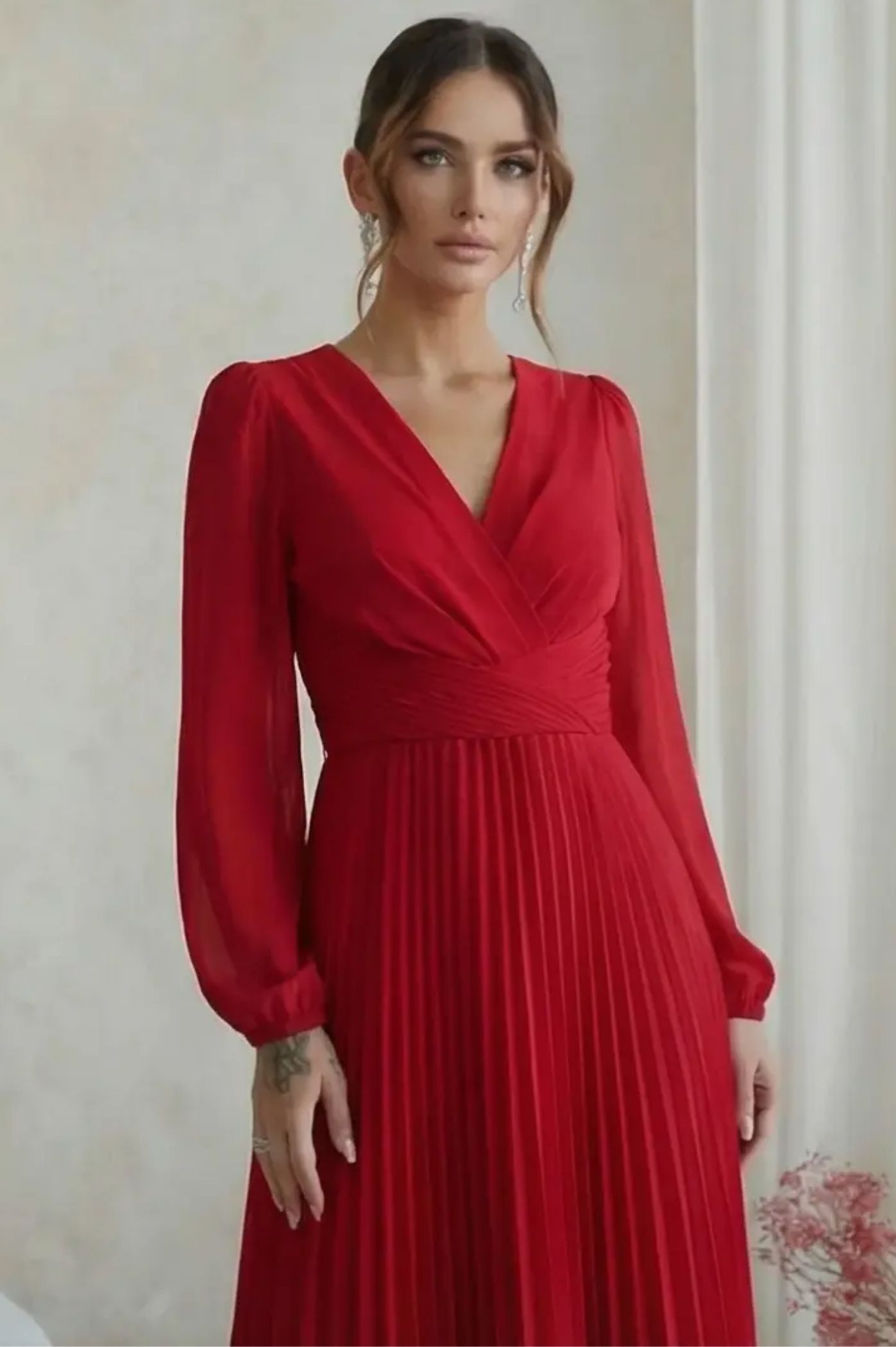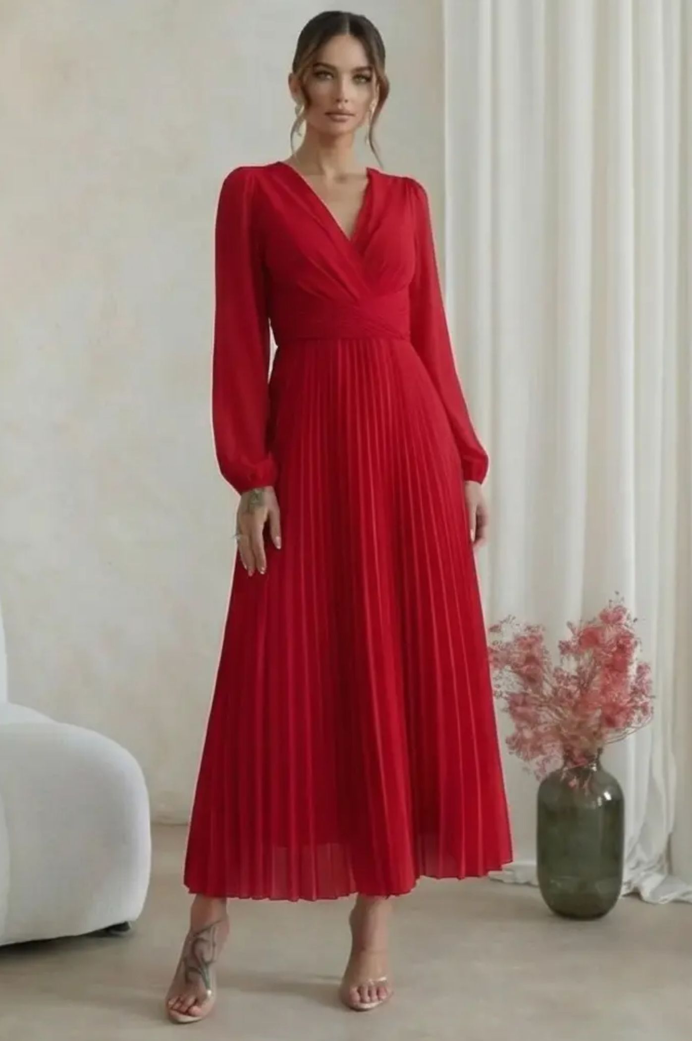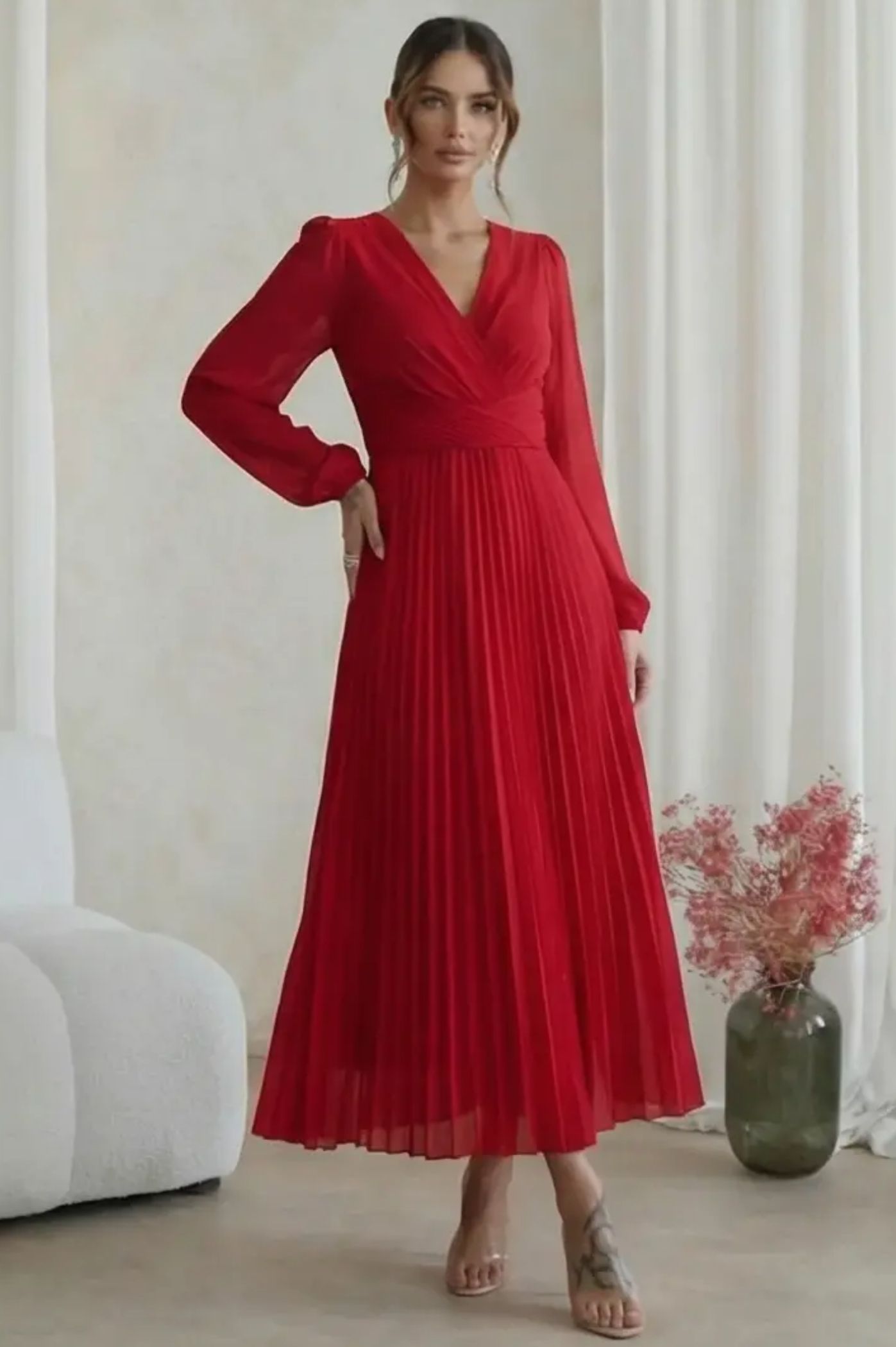 Ανακαλύψτε την απόλυτη ρομαντική εμφάνιση με το μίντι πλισέ φόρεμα. Με αέρινη αίσθηση και σικ λεπτομέρειες, είναι η τέλεια πρόταση για κουμπάρες, νονές ή επίσημες κοινωνικές εκδηλώσεις. Το κρουαζέ σχέδιο στο πάνω μέρος δημιουργεί μια θηλυκή λαιμόκοψη V και τονίζει όμορφα τη μέση. Η εντυπωσιακή πλισέ φούστα χαρίζει μοναδική κίνηση και μια αριστοκρατική νότα σε κάθε σας βήμα. Τα μακριά διάφανα μανίκια με ελαφρύ όγκο προσδίδουν μια σοφιστικέ αισθητική, ιδανική για απογευματινά events.