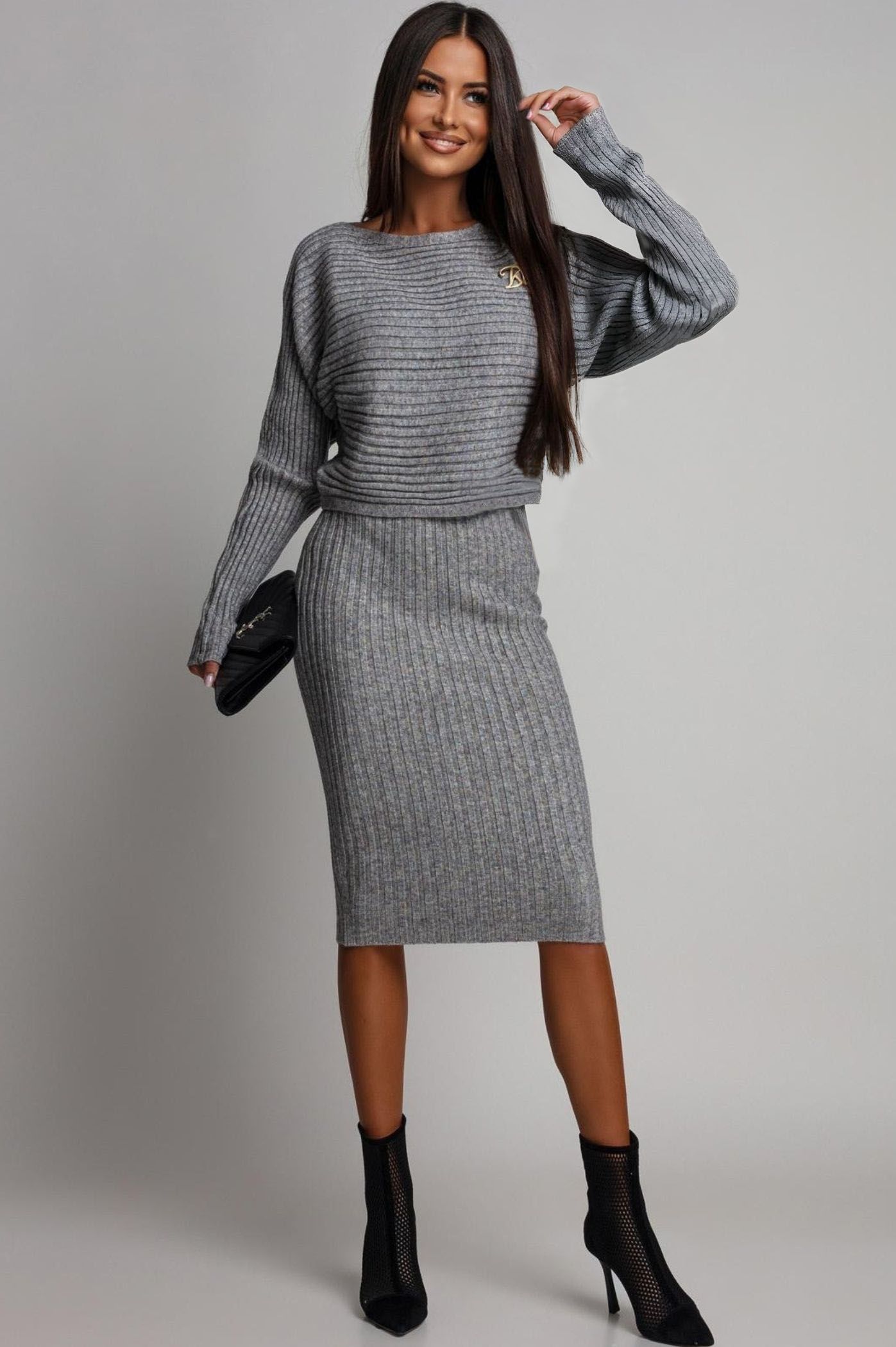 Ανακάλυψε το απόλυτα κομψό και άνετο γυναικείο πλεκτό σετ . Το σετ περιλαμβάνει μακρυμάνικη ριπ μπλούζα με χαλαρή εφαρμογή και midi φούστα που αγκαλιάζει τη σιλουέτα, προσφέροντας θηλυκό και ταυτόχρονα chic αποτέλεσμα. Ιδανικό για καθημερινές εμφανίσεις, γραφείο ή απογευματινές εξόδους. Συνδύασέ το με μποτάκια ή γόβες για ένα ολοκληρωμένο φθινοπωρινό look.