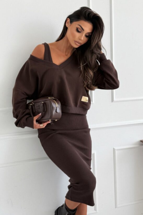 ΦΟΡΕΜΑ MIDI ΣΕΤ ΜΕ ΜΠΛΟΥΖΑ CROPPED ΦΟΥΤΕΡ – ΚΑΦΕ