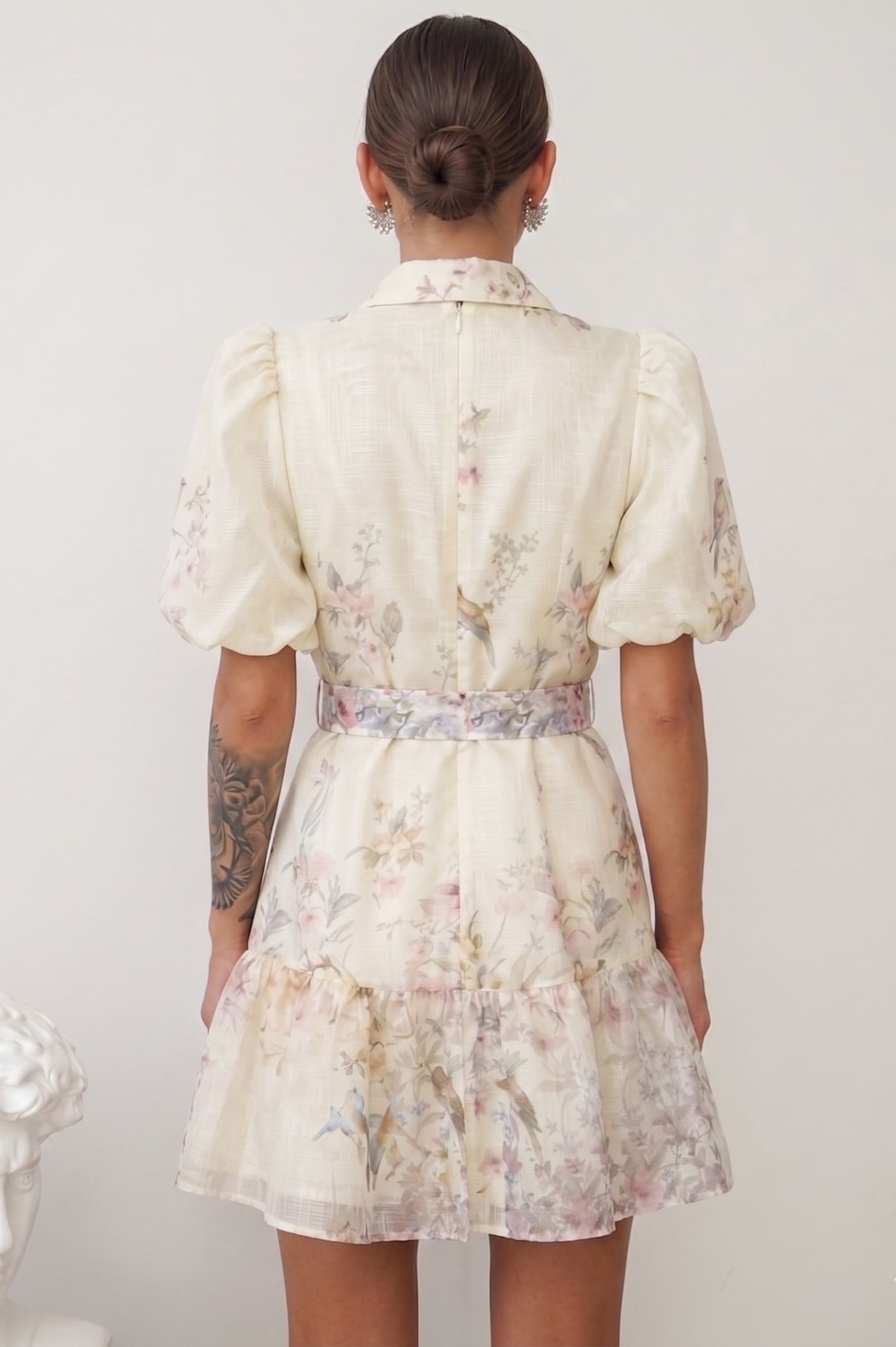 Αναδείξτε το στυλ σας με αυτό το υπέροχο mini φόρεμα, που αποπνέει φινέτσα και θηλυκότητα. Ο συνδυασμός του κλασικού πουκαμίσου με τις μοντέρνες λεπτομέρειες το καθιστά την απόλυτη επιλογή για τις πιο κομψές εμφανίσεις σας. Τα εντυπωσιακά φουσκωτά (balloon) μανίκια προσθέτουν όγκο και μια αέρινη, μοντέρνα διάθεση στο σύνολό σας. Το ντελικάτο floral print σε παστέλ τόνους δημιουργεί ένα ρομαντικό και άκρως ανοιξιάτικο αποτέλεσμα. Διαθέτει ασορτί ζώνη στη μέση με αγκράφα, η οποία τονίζει τη σιλουέτα σας, προσφέροντας απόλυτη ισορροπία μεταξύ της άνεσης και της θηλυκότητας. Το κλασικό γιακά και το μπροστινό κλείσιμο με κουμπιά προσδίδουν μια διαχρονική πινελιά σε αυτό το statement κομμάτι.