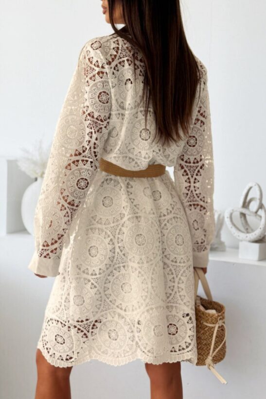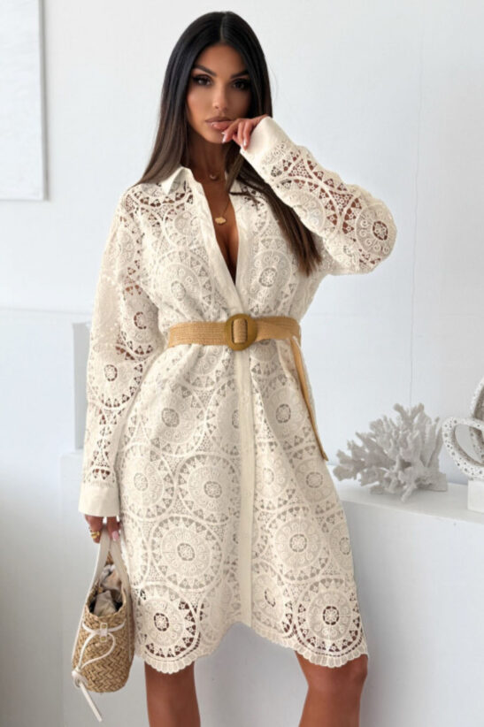Αναδείξτε την κομψότητα και τη θηλυκότητά σας με αυτό το εντυπωσιακό μίνι κιπούρ . Διαθέτει κλασικό γιακά, κουμπιά σε όλο το μήκος του μπροστινού μέρους και μια ζώνη που τονίζει τη μέση, προσφέροντας μια κολακευτική και στιλάτη σιλουέτα. Η δαντελένια υφή του κιπούρ προσδίδει μια ρομαντική και luxurious πινελιά, κάνοντάς το ιδανικό για καλοκαιρινές εξόδους και επίσημες εμφανίσεις .
