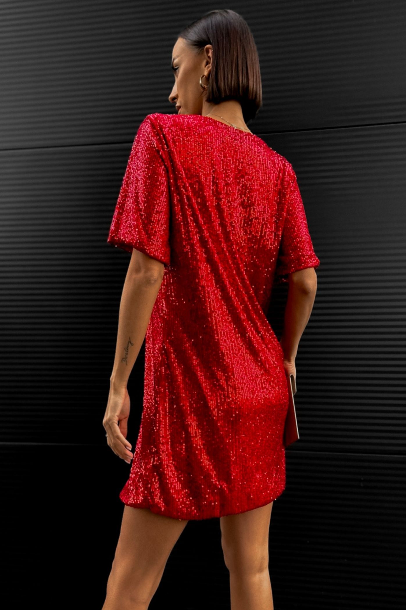 Λαμπερό και παιχνιδιάρικο μίνι φόρεμα από παγιέτες, δημιουργώντας ένα εκθαμβωτικό εφέ. Το φόρεμα διαθέτει κοντό μανίκι και άνετη, χαλαρή γραμμή τύπου T-shirt, προσφέροντας άνεση και στυλ ταυτόχρονα. Το μήκος είναι μίνι, καθιστώντας το ιδανική επιλογή για πρωτοχρονιάτικο ρεβεγιόν, χριστουγεννιάτικα πάρτι και βραδινές εξόδους με έντονη διάθεση. Ολοκληρώστε το look με minimal αξεσουάρ και ψηλοτάκουνες γόβες ή μποτάκια. Must-have κομμάτι για τις γιορτές.