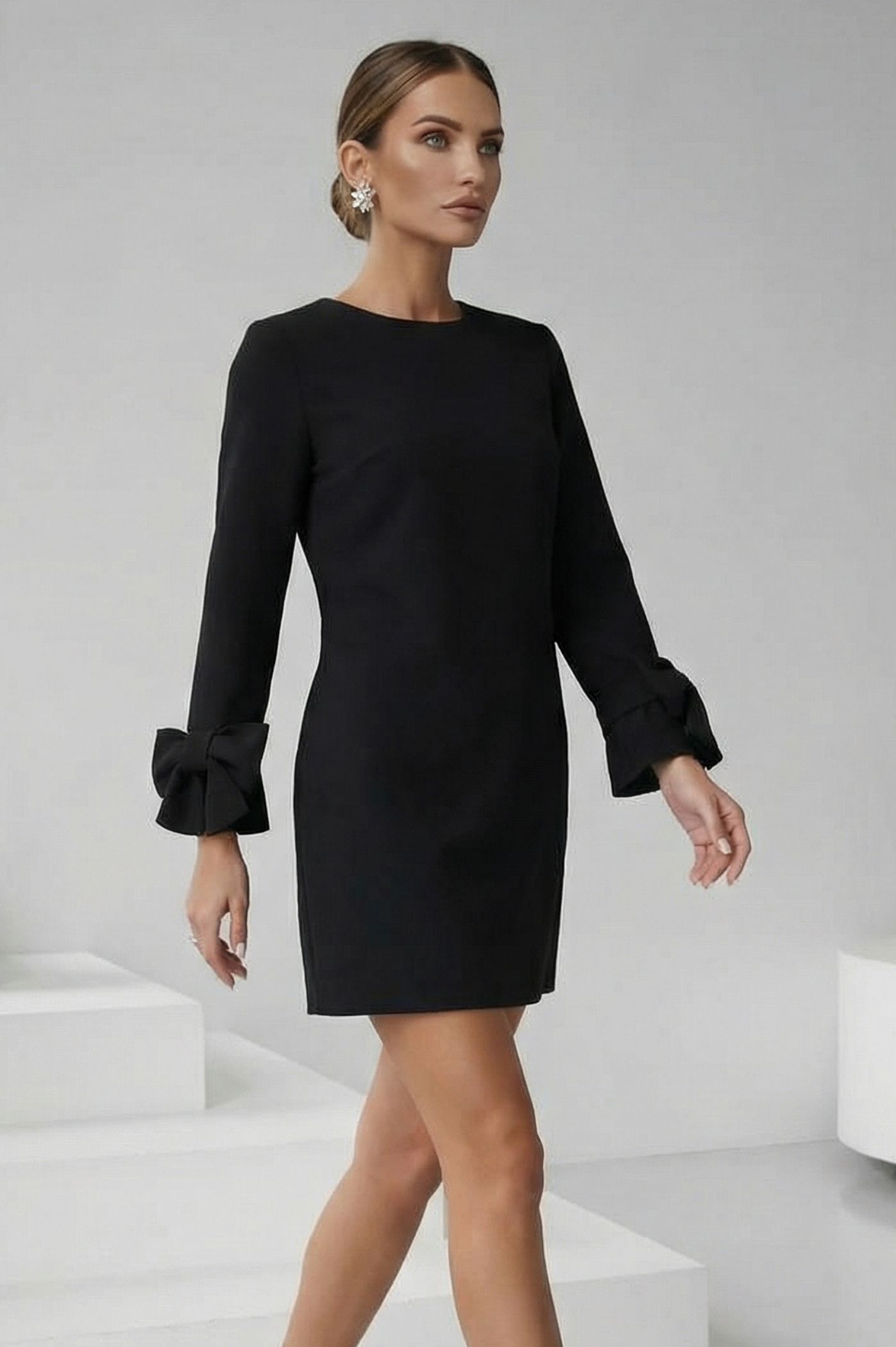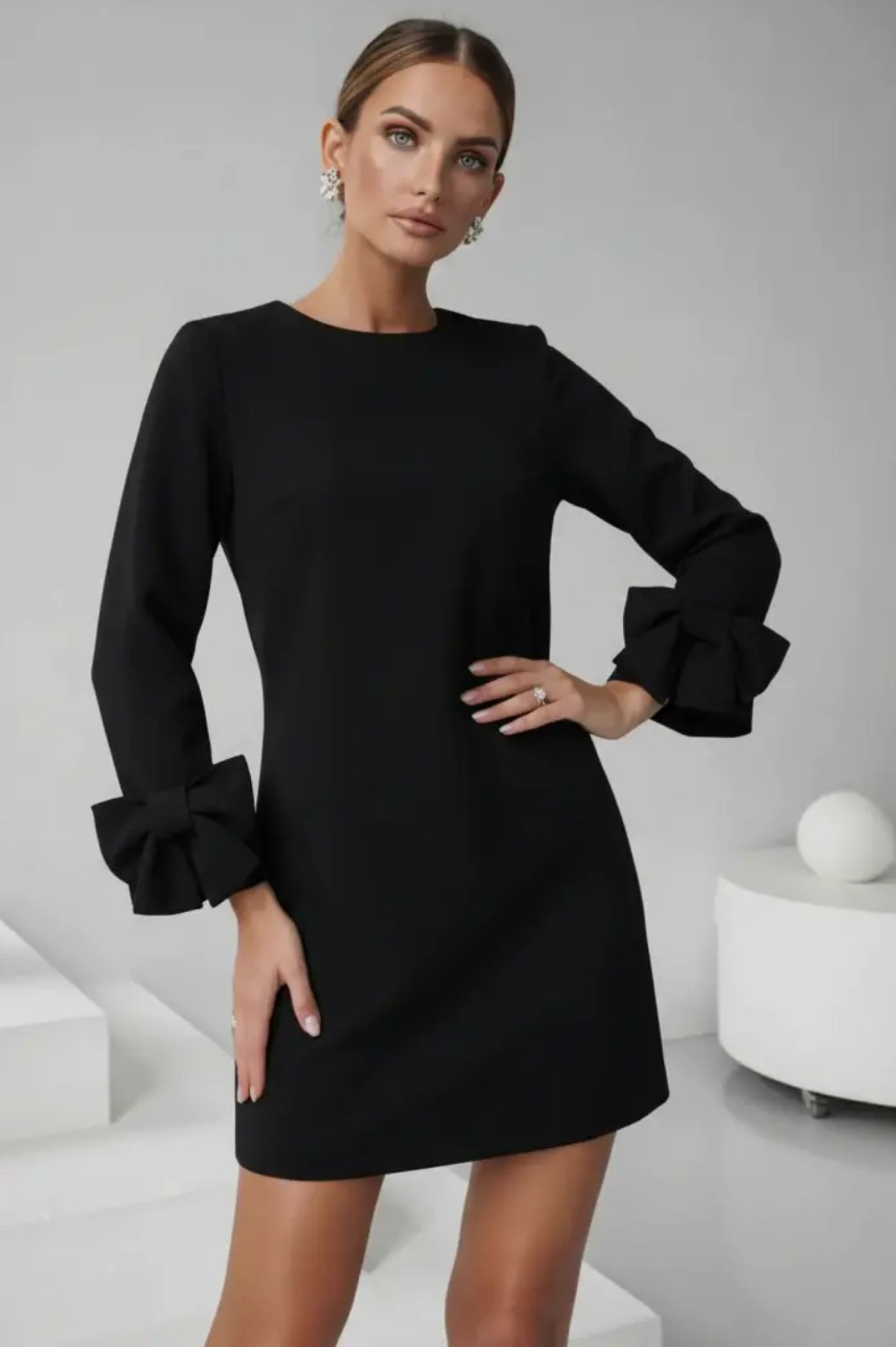 Αναδείξτε την πιο chic πλευρά σας με αυτό το μίνι φόρεμα, που συνδυάζει τη minimal αισθητική με statement λεπτομέρειες. Είναι η ιδανική επιλογή για όσες αναζητούν ένα ρούχο που ισορροπεί ανάμεσα στον ρομαντισμό και τη σύγχρονη κομψότητα. Η πιο εντυπωσιακή λεπτομέρεια του φορέματος είναι οι μεγάλοι φιόγκοι στις μανσέτες, που προσθέτουν όγκο και μια couture αίσθηση στο σύνολο. Σε ίσια, άνετη γραμμή που κολακεύει κάθε σωματότυπο και προσφέρει ελευθερία κινήσεων. Διαθέτει chic στρογγυλή λαιμόκοψη, καθιστώντας το κατάλληλο τόσο για πρωινές όσο και για βραδινές περιστάσεις.