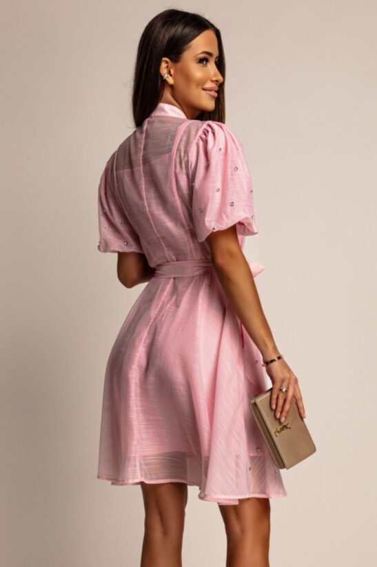 ΦΟΡΕΜΑ ΜΙΝΙ ΜΕ STRASS ΚΑΙ ΖΩΝΗ – ΡΟΖ