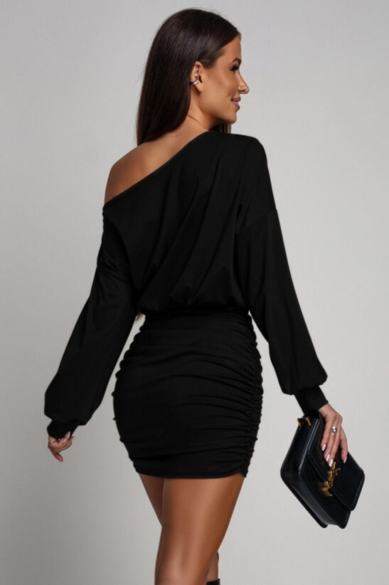 ΦΟΡΕΜΑ ΜΙΝΙ OFF SHOULDER ΜΕ ΣΟΥΡΕΣ – ΜΑΥΡΟ