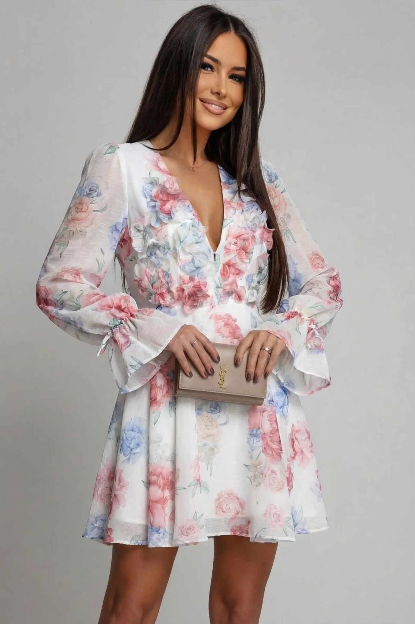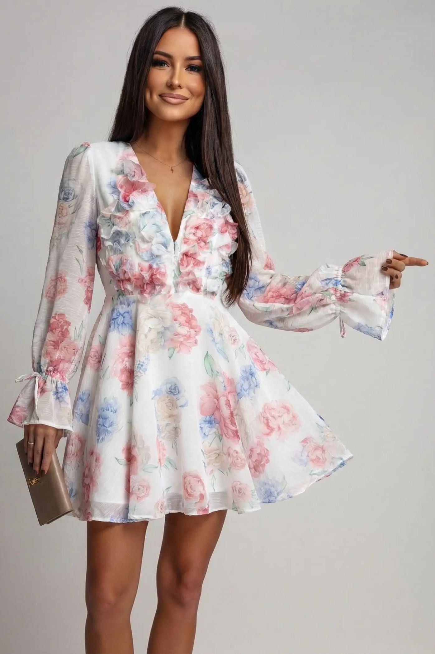 ΦΟΡΕΜΑ ΜΙΝΙ FLORAL ΜΕ V ΝΤΕΚΟΛΤΕ – ΛΕΥΚΟ