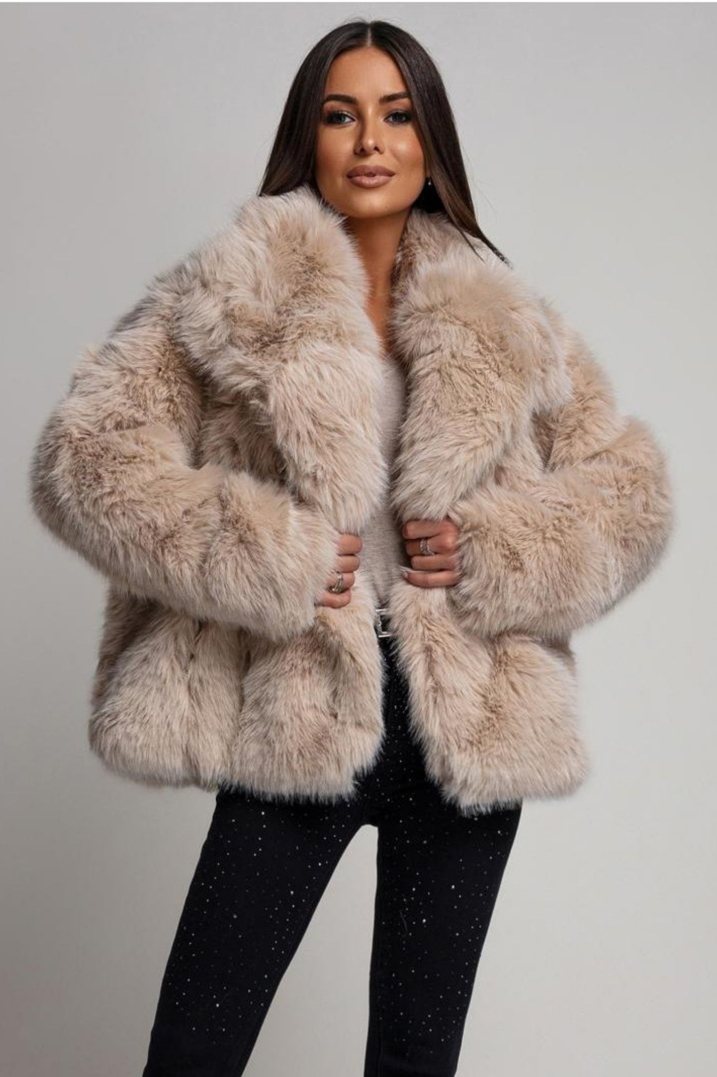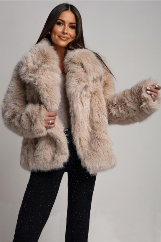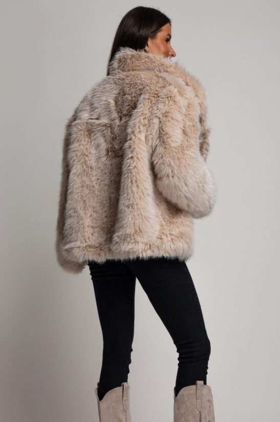 Αναδείξτε το στυλ σας με αυτή την υπέροχη κοντή γούνα. Το βασικό χαρακτηριστικό της είναι ο μεγάλος, πλούσιος γιακάς που αγκαλιάζει τον λαιμό και το ντεκολτέ, προσφέροντας extra ζεστασιά και μια δραματική, glamorous εμφάνιση. Η κοντή γραμμή είναι ιδανική για να αναδεικνύει τη μέση σας όταν συνδυάζεται με ψηλόμεσα παντελόνια ή φορέματα. Αυτό το fluffy πανωφόρι είναι το απόλυτο statement piece, ιδανικό για να ολοκληρώσετε βραδινά looks,επίσημες εκδηλώσεις ή για να δώσετε λάμψη στις καθημερινές σας εμφανίσεις.