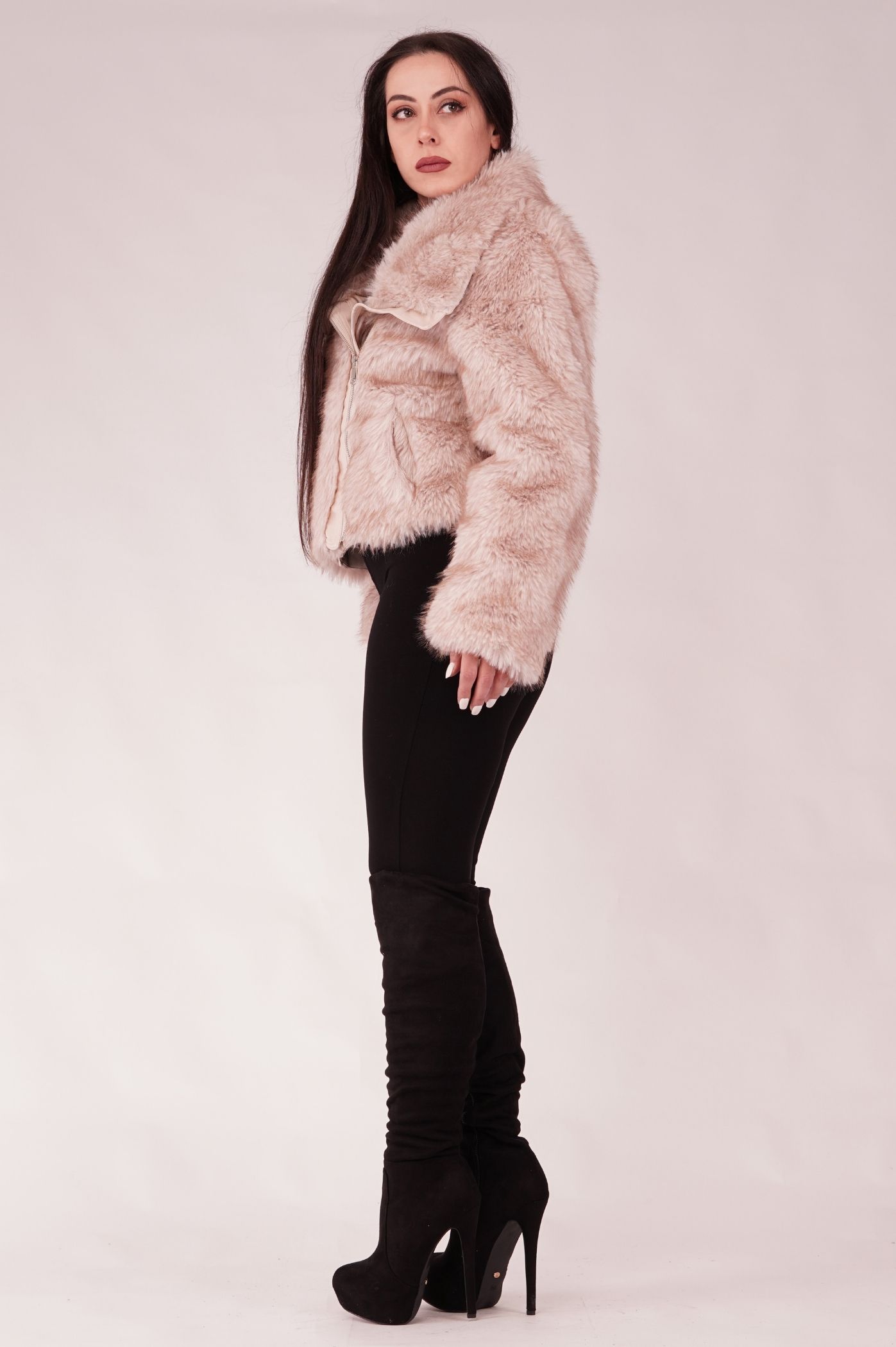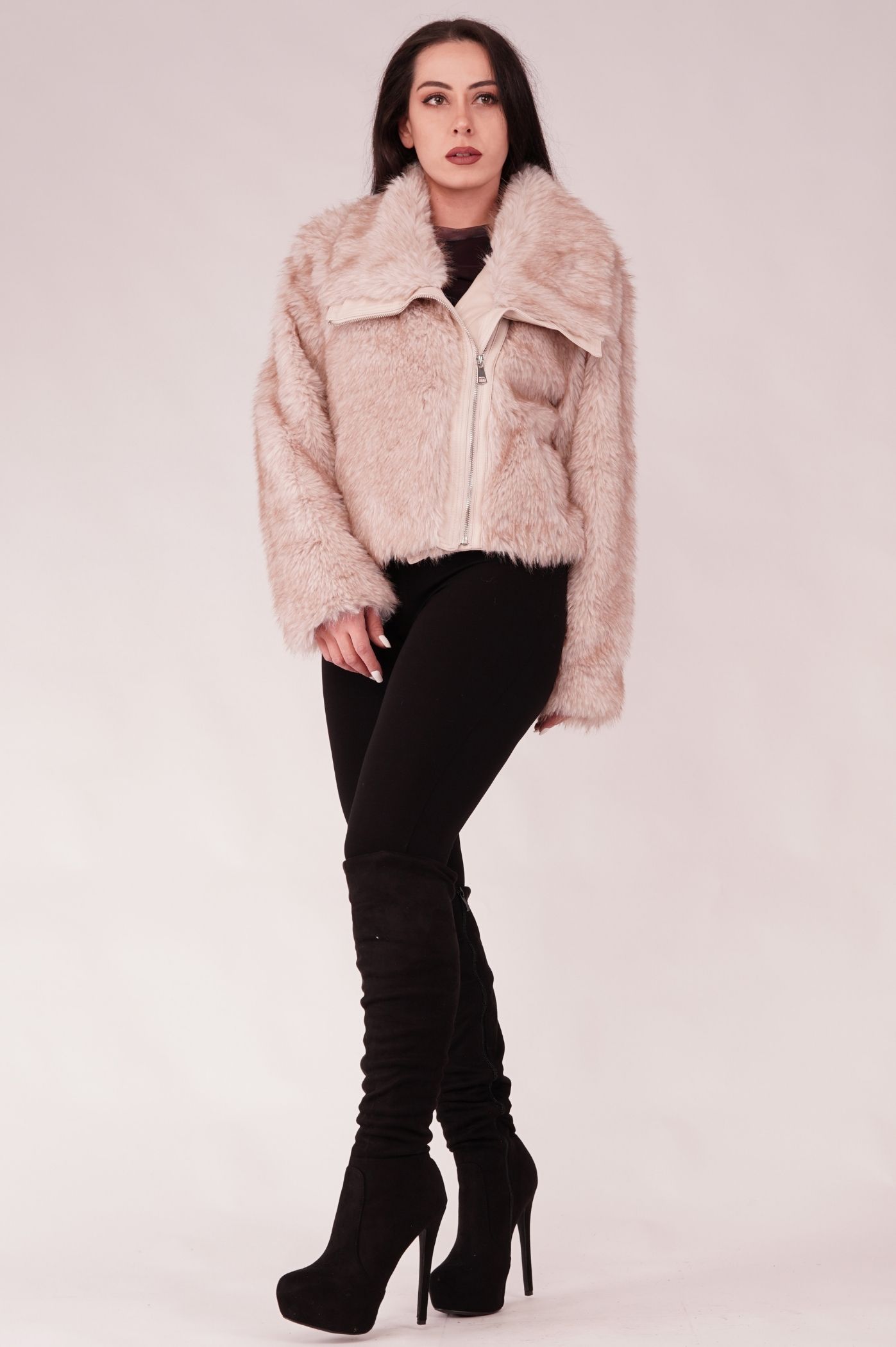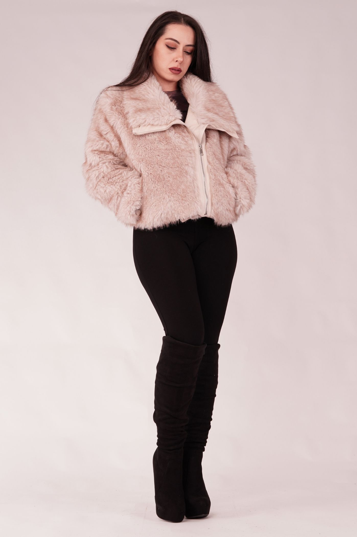 Αναδείξτε το χειμερινό σας στυλ με αυτό το μοντέρνο κοντό μπουφάν γούνας. Είναι το απόλυτο must-have πανωφόρι για τις κρύες μέρες και νύχτες. Η πλούσια και απαλή οικολογική γούνα προσφέρει ασύγκριτη ζεστασιά και άνεση, ενώ η κοντή γραμμή το καθιστά ιδανικό για να συνδυαστεί με ψηλόμεσα παντελόνια ή φορέματα. Διαθέτει μεγάλο γιακά που προσθέτει όγκο και κομψότητα, μεταλλικό φερμουάρ για εύκολο κλείσιμο καθώς και πρακτικές τσέπες για ζεστασιά και αποθήκευση, ενώ οι λεπτομέρειες δερματίνης στο φερμουάρ και τον γιακά, προσδίδουν αντίθεση και μοντέρνο ύφος. Ταιριάζει απόλυτα με τζιν ή δερμάτινα κομμάτια. Φορέστε το για ένα casual chic πρωινό look ή πάνω από το βραδινό σας φόρεμα για μια glamorous έξοδο.