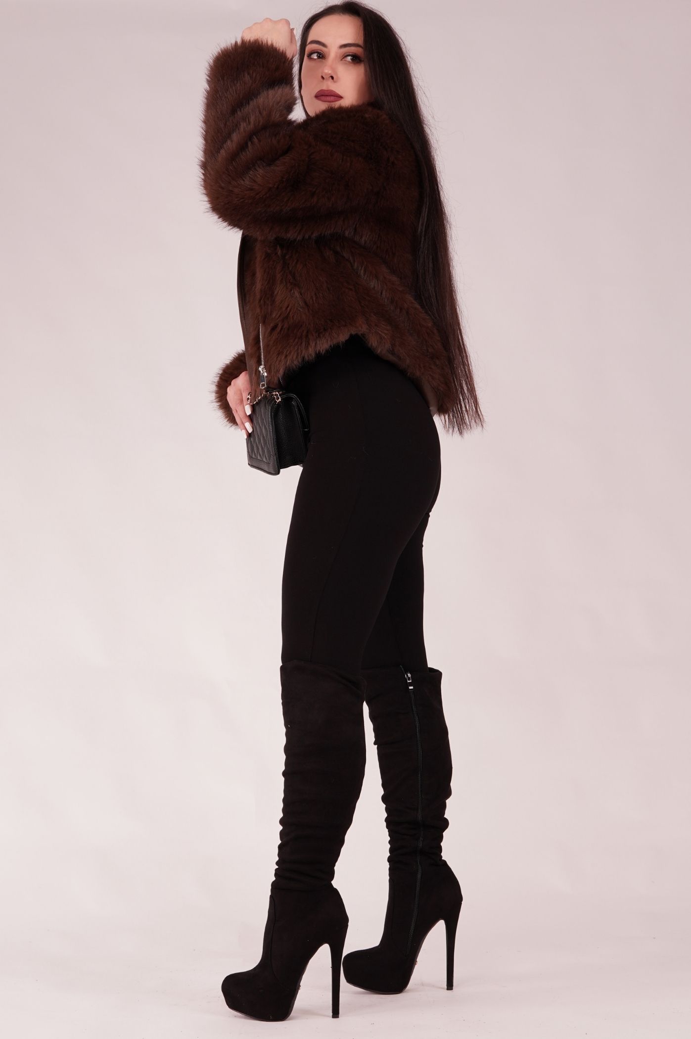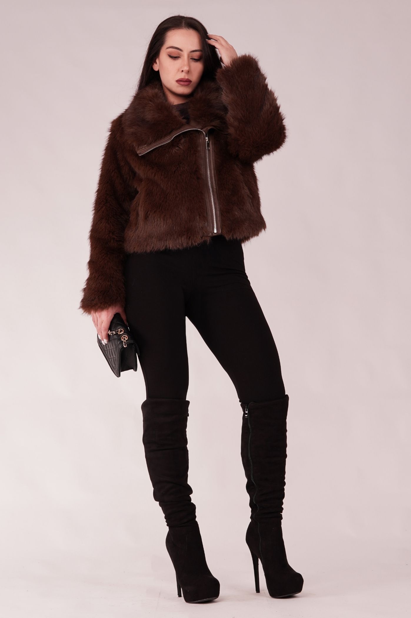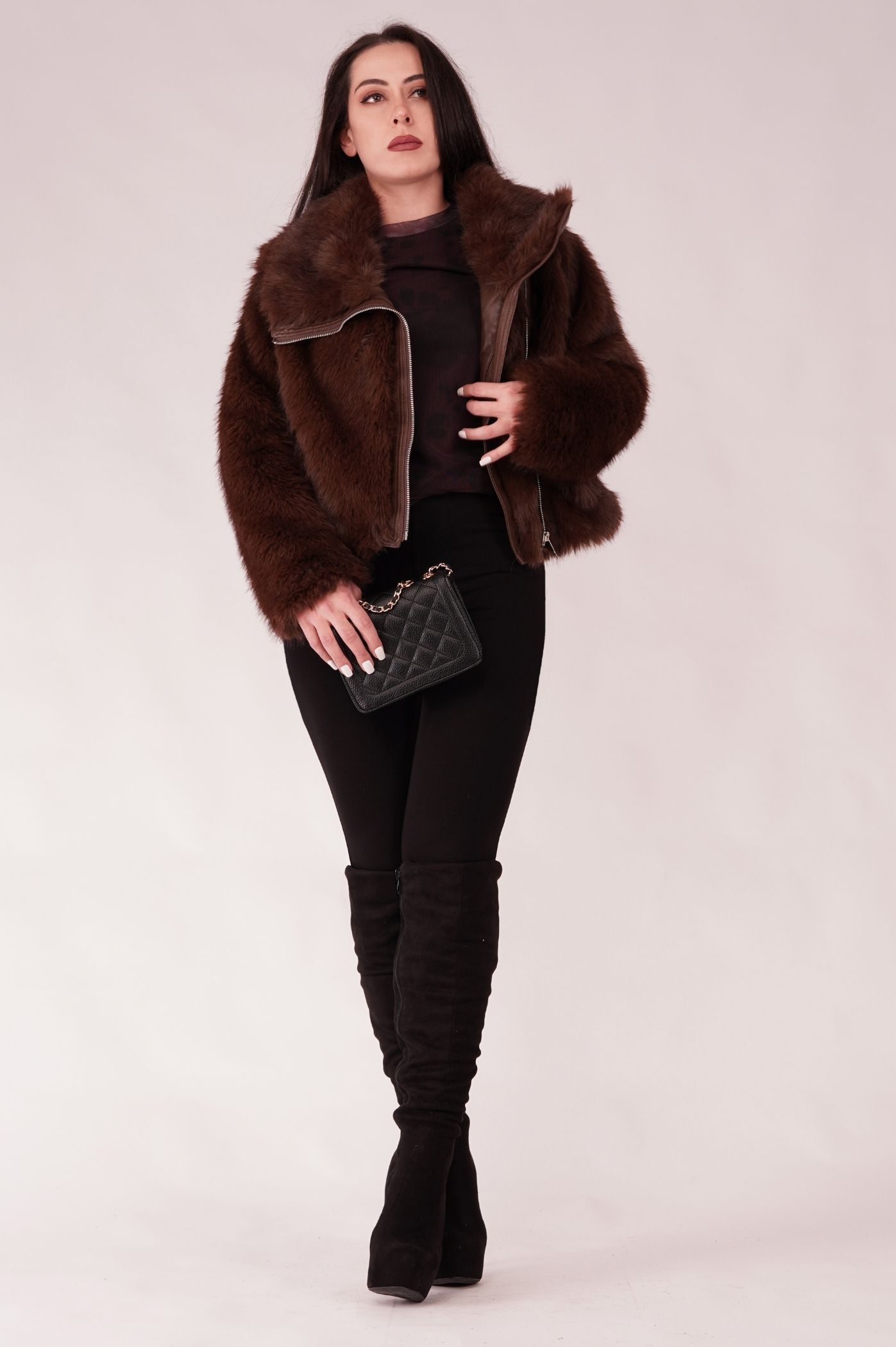 Αναδείξτε το χειμερινό σας στυλ με αυτό το μοντέρνο κοντό μπουφάν γούνας. Είναι το απόλυτο must-have πανωφόρι για τις κρύες μέρες και νύχτες. Η πλούσια και απαλή οικολογική γούνα προσφέρει ασύγκριτη ζεστασιά και άνεση, ενώ η κοντή γραμμή το καθιστά ιδανικό για να συνδυαστεί με ψηλόμεσα παντελόνια ή φορέματα. Διαθέτει μεγάλο γιακά που προσθέτει όγκο και κομψότητα, μεταλλικό φερμουάρ για εύκολο κλείσιμο καθώς και πρακτικές τσέπες για ζεστασιά και αποθήκευση, ενώ οι λεπτομέρειες δερματίνης στο φερμουάρ και τον γιακά, προσδίδουν αντίθεση και μοντέρνο ύφος. Ταιριάζει απόλυτα με τζιν ή δερμάτινα κομμάτια. Φορέστε το για ένα casual chic πρωινό look ή πάνω από το βραδινό σας φόρεμα για μια glamorous έξοδο.