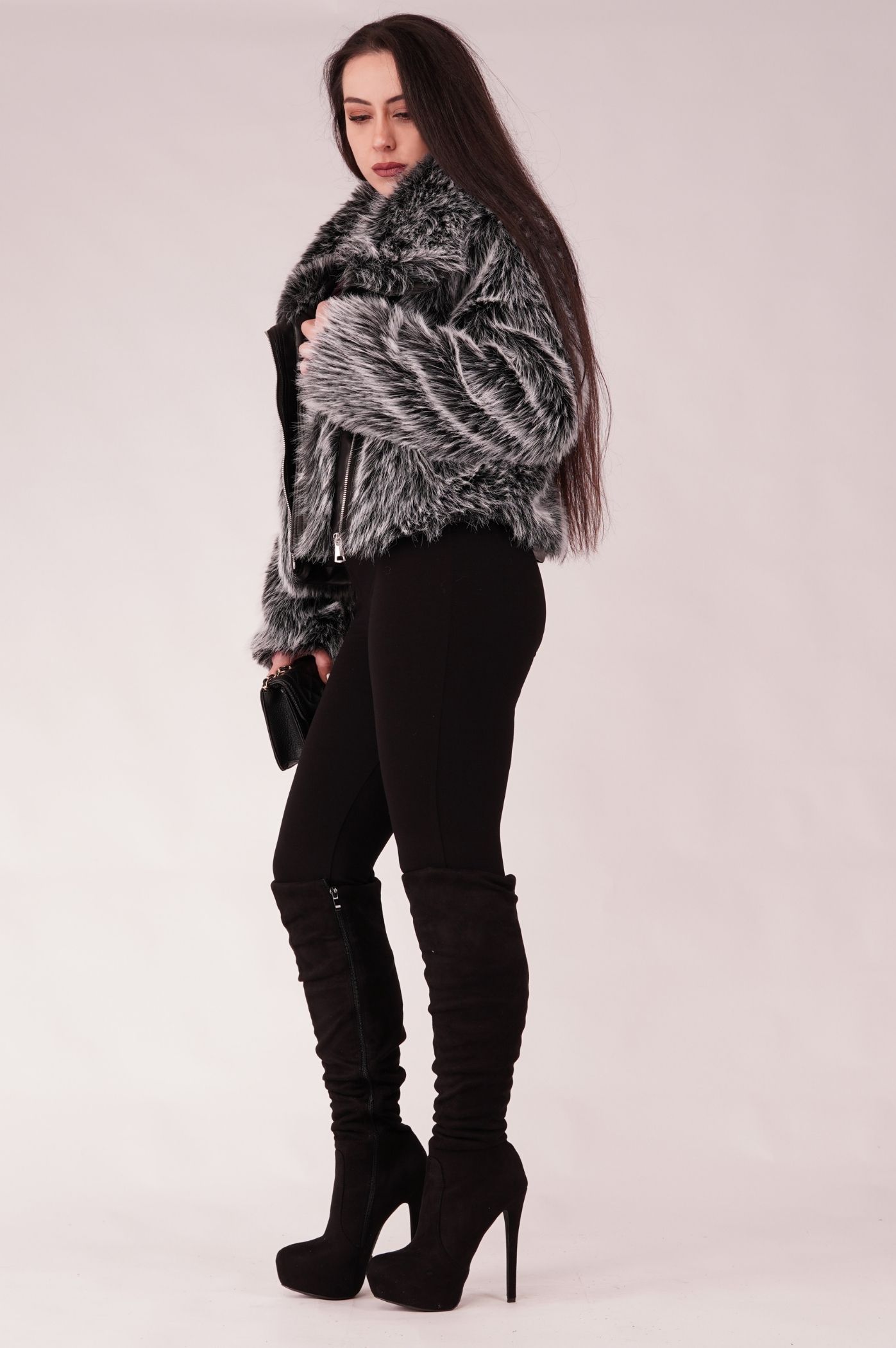 Αναδείξτε το χειμερινό σας στυλ με αυτό το μοντέρνο κοντό μπουφάν γούνας. Είναι το απόλυτο must-have πανωφόρι για τις κρύες μέρες και νύχτες. Η πλούσια και απαλή οικολογική γούνα προσφέρει ασύγκριτη ζεστασιά και άνεση, ενώ η κοντή γραμμή το καθιστά ιδανικό για να συνδυαστεί με ψηλόμεσα παντελόνια ή φορέματα. Διαθέτει μεγάλο γιακά που προσθέτει όγκο και κομψότητα, μεταλλικό φερμουάρ για εύκολο κλείσιμο καθώς και πρακτικές τσέπες για ζεστασιά και αποθήκευση, ενώ οι λεπτομέρειες δερματίνης στο φερμουάρ και τον γιακά, προσδίδουν αντίθεση και μοντέρνο ύφος. Ταιριάζει απόλυτα με τζιν ή δερμάτινα κομμάτια. Φορέστε το για ένα casual chic πρωινό look ή πάνω από το βραδινό σας φόρεμα για μια glamorous έξοδο.