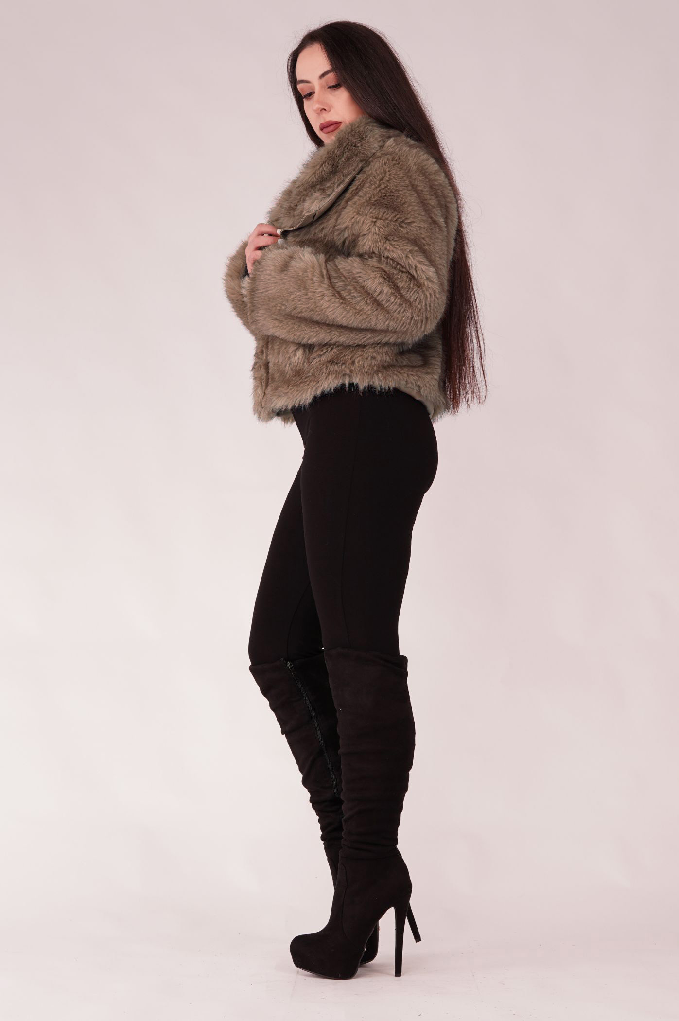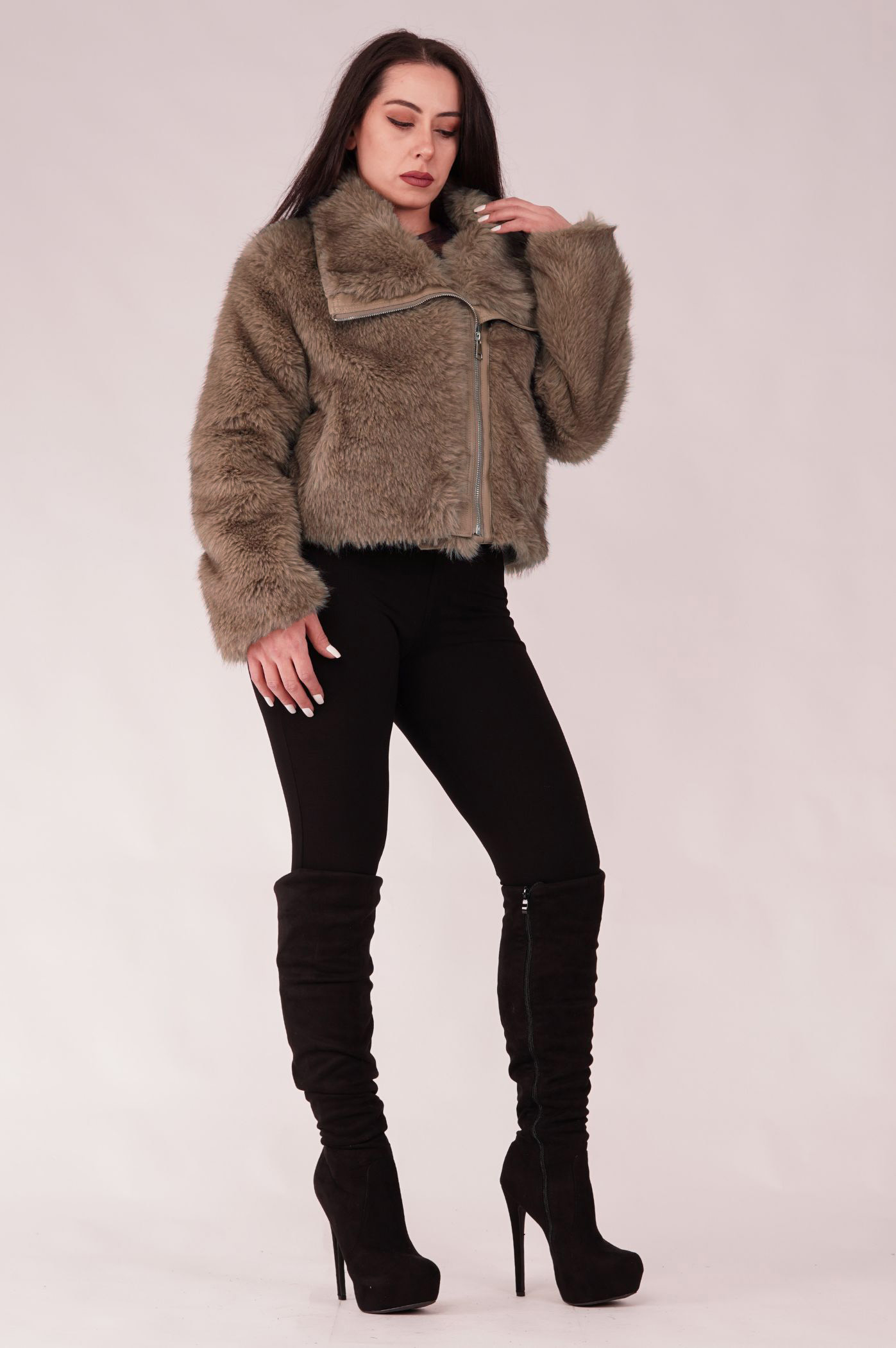Αναδείξτε το χειμερινό σας στυλ με αυτό το μοντέρνο κοντό μπουφάν γούνας. Είναι το απόλυτο must-have πανωφόρι για τις κρύες μέρες και νύχτες. Η πλούσια και απαλή οικολογική γούνα προσφέρει ασύγκριτη ζεστασιά και άνεση, ενώ η κοντή γραμμή το καθιστά ιδανικό για να συνδυαστεί με ψηλόμεσα παντελόνια ή φορέματα. Διαθέτει μεγάλο γιακά που προσθέτει όγκο και κομψότητα, μεταλλικό φερμουάρ για εύκολο κλείσιμο καθώς και πρακτικές τσέπες για ζεστασιά και αποθήκευση, ενώ οι λεπτομέρειες δερματίνης στο φερμουάρ και τον γιακά, προσδίδουν αντίθεση και μοντέρνο ύφος. Ταιριάζει απόλυτα με τζιν ή δερμάτινα κομμάτια. Φορέστε το για ένα casual chic πρωινό look ή πάνω από το βραδινό σας φόρεμα για μια glamorous έξοδο.