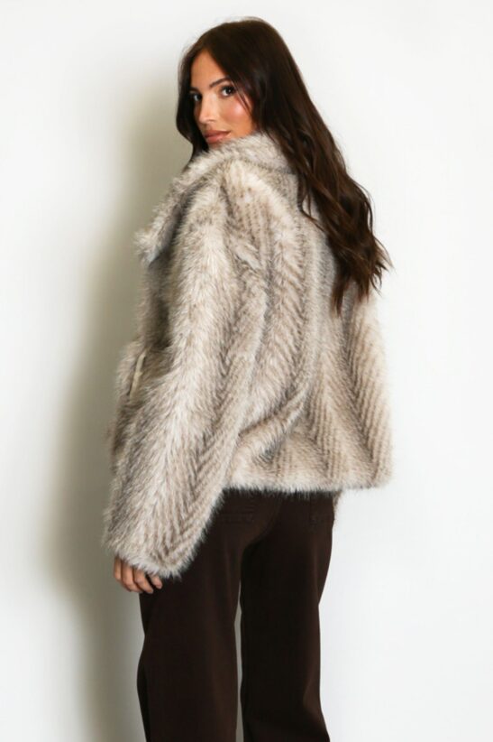 Αναδείξτε το χειμερινό σας στυλ με την πιο εντυπωσιακή γυναικεία γούνα της σεζόν. Διαθέτει ανάγλυφο σχέδιο που δίνει όγκο και ιδιαίτερη υφή στο ύφασμα, καθώς και έναν εντυπωσιακό μεγάλο γιακά που αγκαλιάζει τον λαιμό. Είναι κοντό σε μήκος, καθιστώντας το ιδανικό για να φορεθεί πάνω από φορέματα ή φούστες. Η μαλακή οικολογική γούνα προσφέρει εξαιρετική αίσθηση και ζεστασιά, ενώ η άνετη γραμμή επιτρέπει να τη φορέσετε πάνω από πουλόβερ. Μπορεί να φορεθεί με ένα δερμάτινο παντελόνι ή βινύλ φούστα για μια δυναμική βραδινή έξοδο, ή με τζιν για ένα πιο glam casual look. Αποκτήστε αυτό το πολυτελές γούνινο τζάκετ και κλέψτε τις εντυπώσεις σε κάθε σας εμφάνιση!