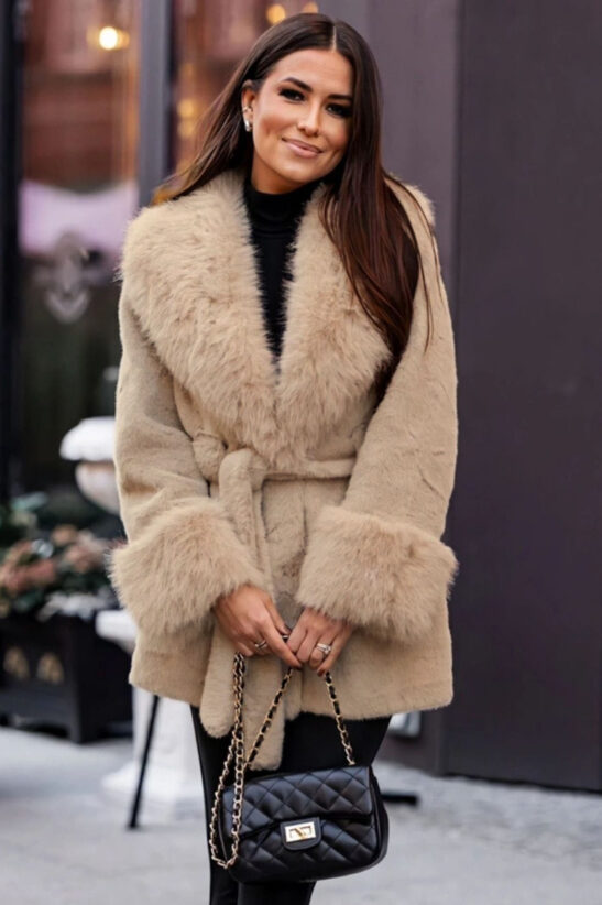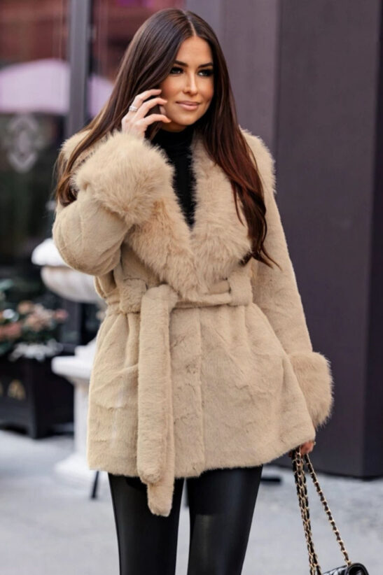 Αναδείξτε το στυλ σας με το πιο θηλυκό και ζεστό γούνινο πανωφόρι της σεζόν. Το βασικό χαρακτηριστικό της είναι η αποσπώμενη ζώνη στη μέση που τονίζει τη γυναικεία σιλουέτα, δημιουργώντας ένα κλασικό και κομψό wrap coat look. Διαθέτει πλούσιο, μαλακό ύφασμα, εντυπωσιακό μεγάλο γιακά και λεπτομέρειες γούνας στις μανσέτες, προσφέροντας μια αίσθηση χολιγουντιανής αίγλης. Μπορεί να φορεθεί πάνω από ένα μαύρο ζιβάγκο με δερματίνη κολάν ή πάνω από το αγαπημένο σας βραδινό φόρεμα. Είναι το ιδανικό χειμερινό μπουφάν για κομψές εξόδους. Αποκτήστε αυτό το πολυτελές γούνινο μπουφάν με ζώνη και απολαύστε ζεστασιά με αξεπέραστο στυλ!