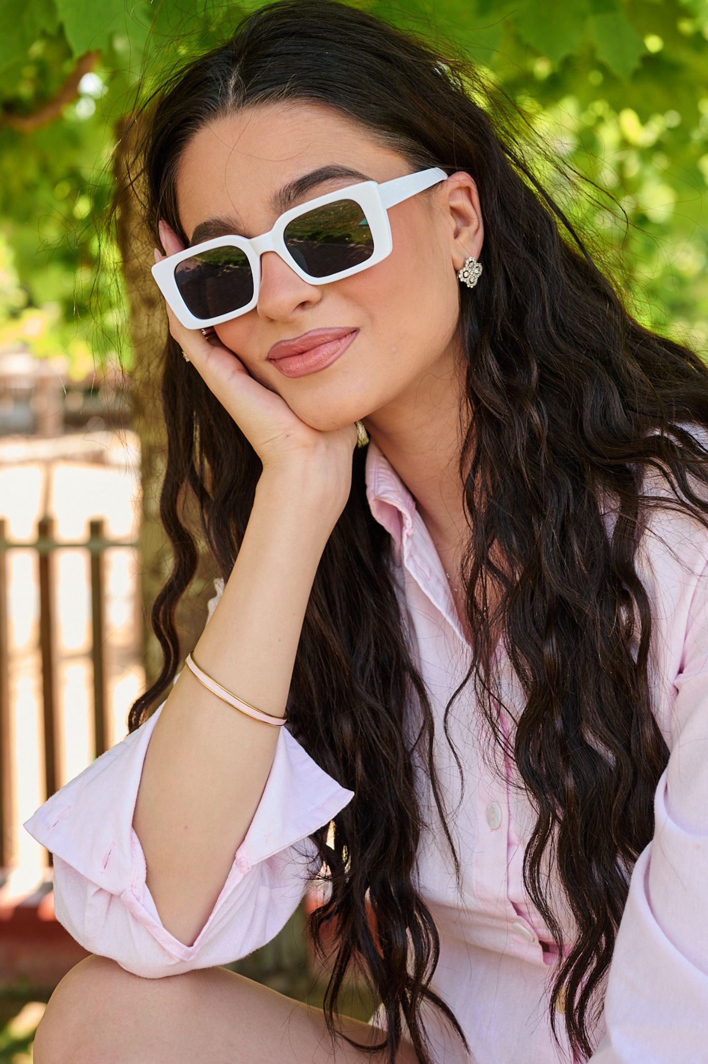 Γυαλιά Ηλίου River Με Τετραγωνισμένο Κοκκάλινο Σκελετό – Λευκό