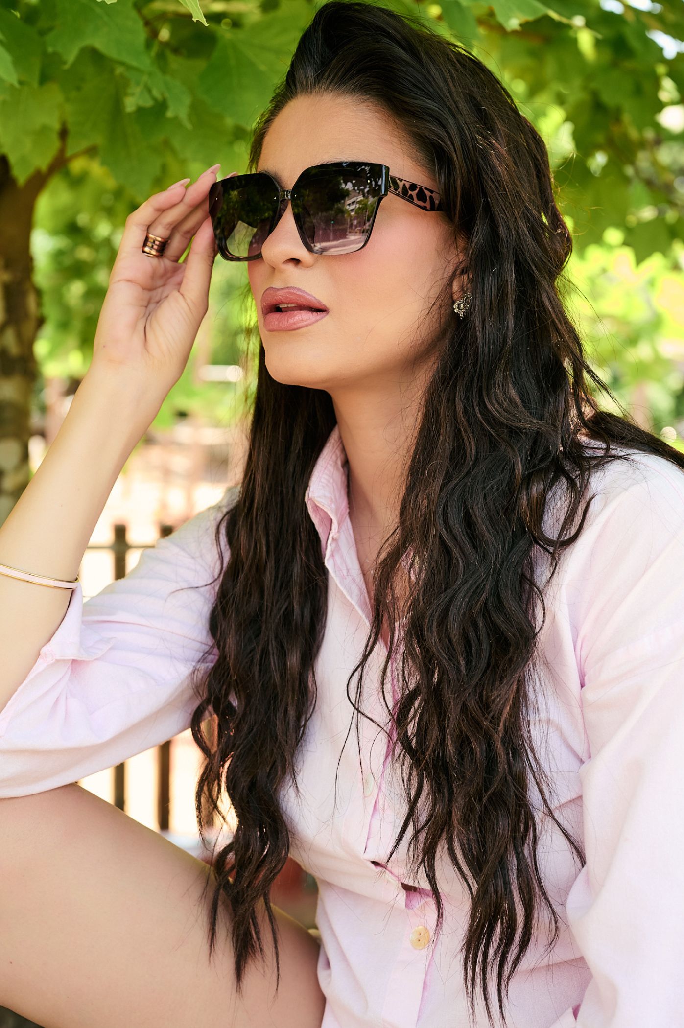 Γυαλιά Ηλίου Vista Με Τετραγωνισμένο Σκελετό Και Δίχρωμο Φακό – Animal Print